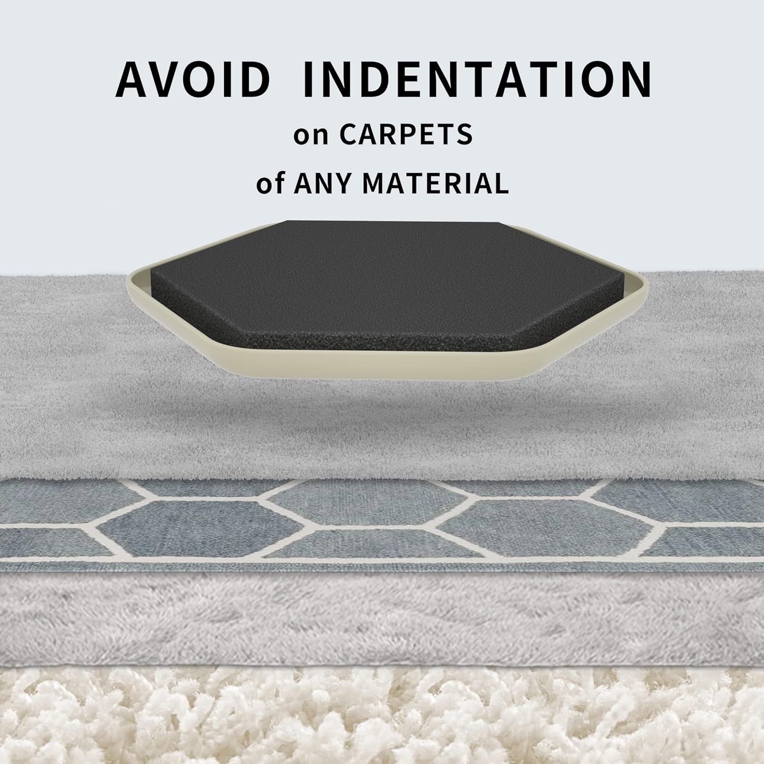 • FURNITURE MOVING PADS PROTECT ALL CARPET SURFACES - 20 pcs 3 1/2” beige hexagon furniture sliders for carpet. Just put these rubber foam under the furniture feet to move it, no more scratches and noise here!