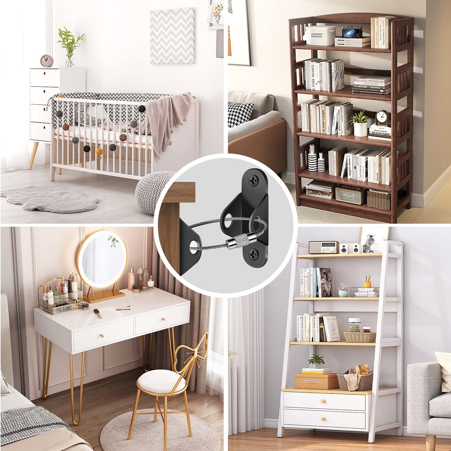 • Baby Safety Guard: Let your little one explore and climb to their heart's content! Baby proof furniture anchors help keep furniture secure from the potential tip-over hazard of curious children. This anchor will help keep furniture upright even if your children pull out the dresser drawer to form a ladder and climb onto the dresser for fun.