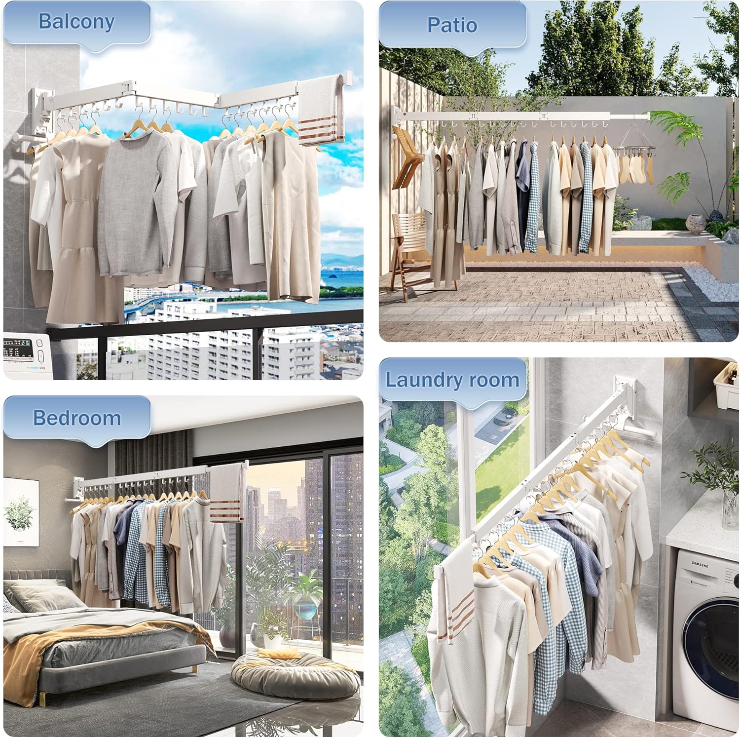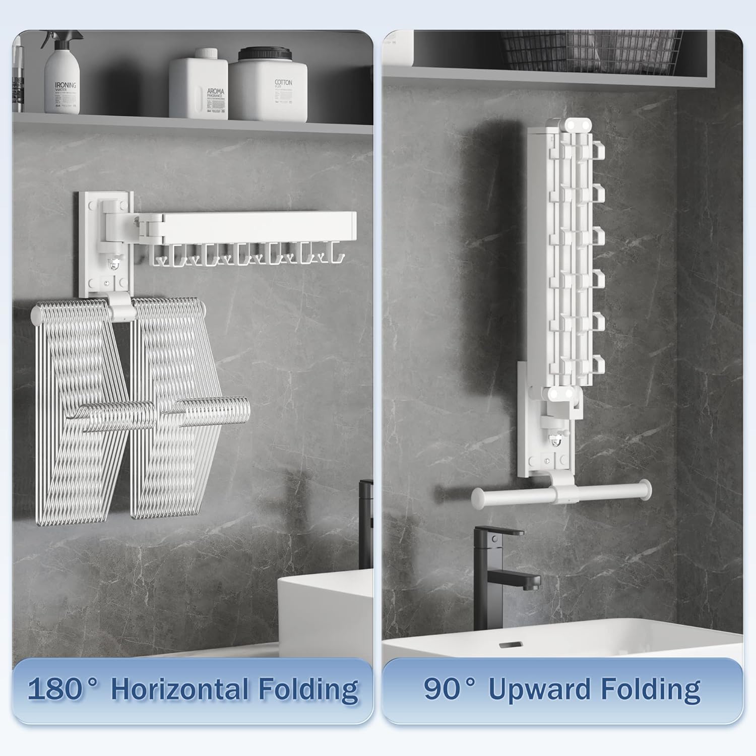 Drying Rack, Wall Mounted Clothes Rack, Aluminum, 220lbs Capacity, Foldable, White