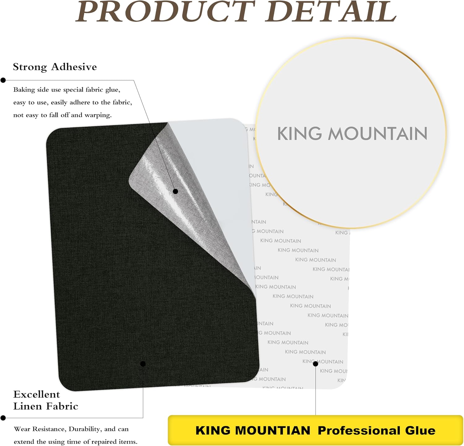 KING MOUNTAIN Fine Linen Repair Patches, Self-Adhesive Fabric, 8X11 Inch 2 PCS, Multi Color, for Sofa and Clothes (Charcoal Black)