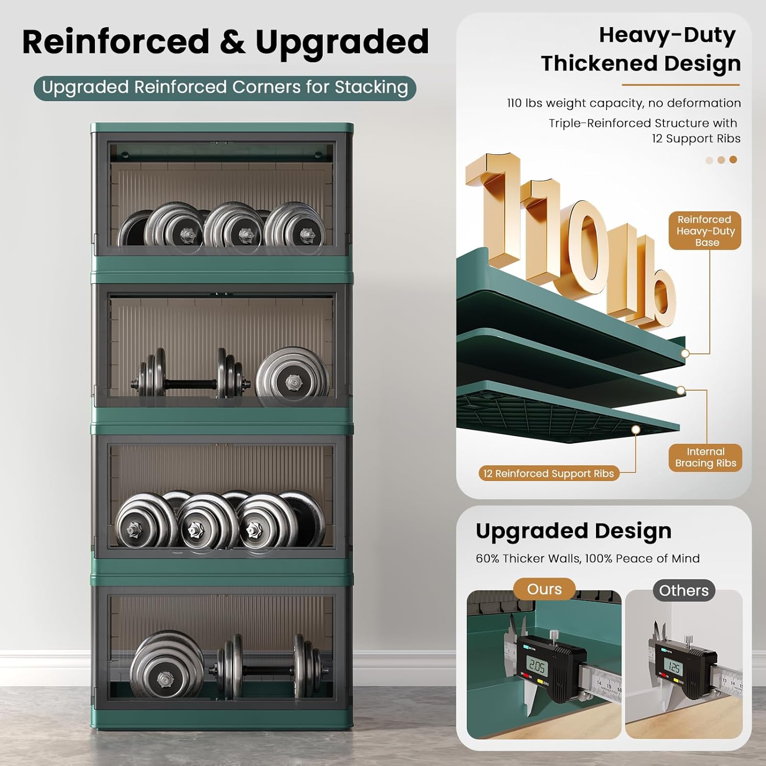 • Quick Assemble & Fold: Our storage containers can be assembled in 1 minute and folds down to 4 inches when not in use, easily tucking under beds/tight spaces—saves 80% of space. Heavy-duty PP plastic (2mm thick walls) supports 110 lbs (50 kg)/pack