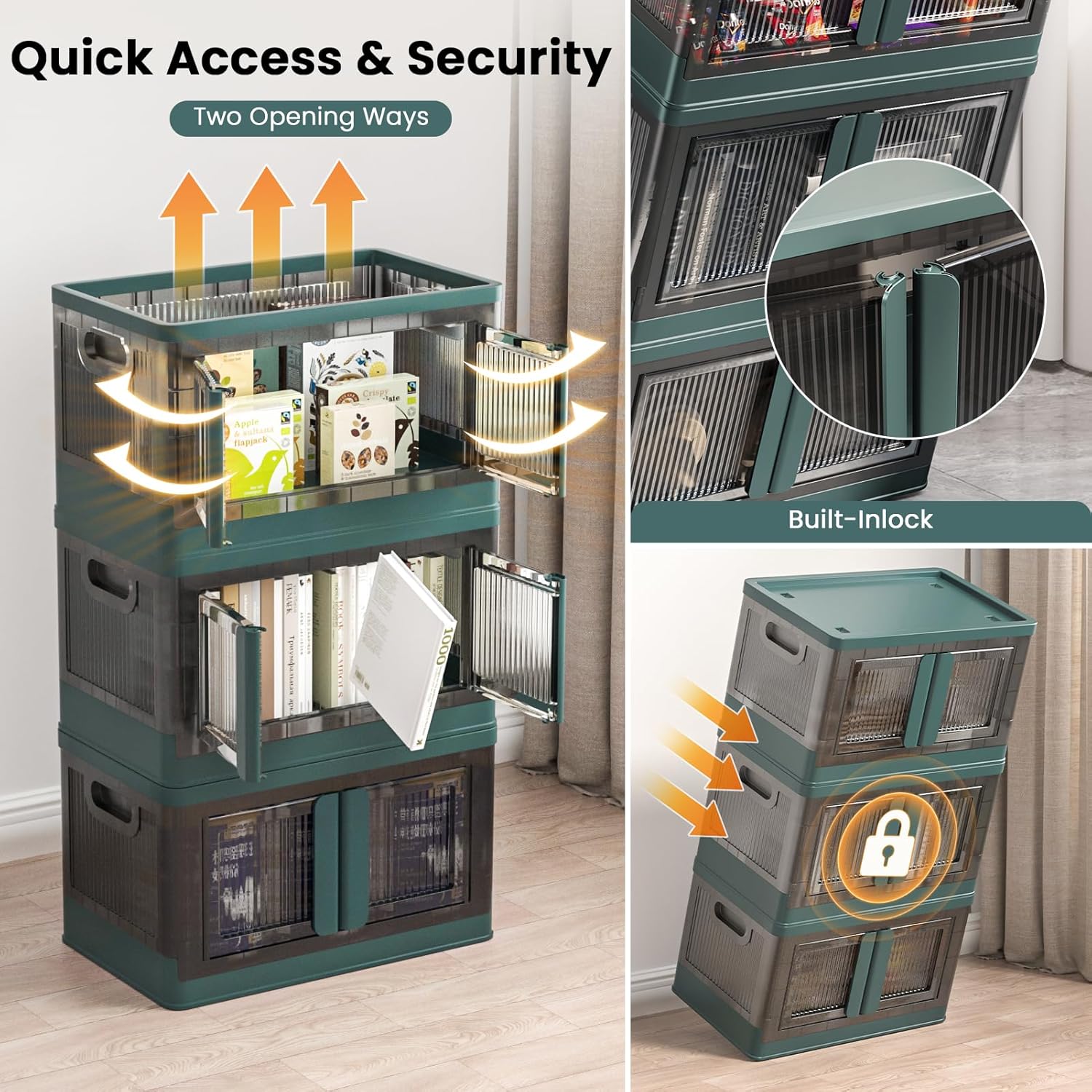 • Quick Access & Security: Clear doors let you see contents instantly, open-front design allows effortless item retrieval. Additionally, the built-in lock clasp prevents accidental opening during transport