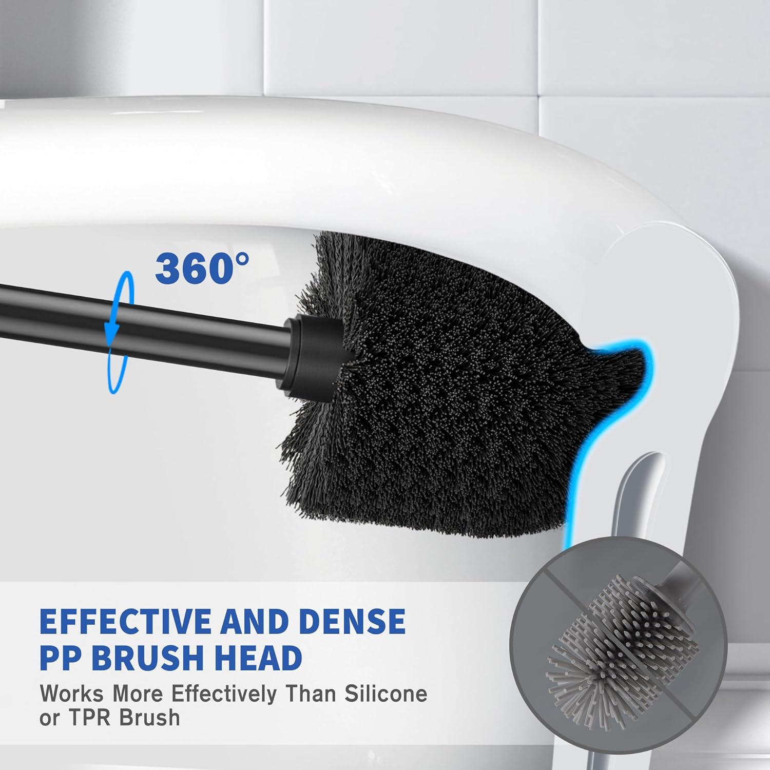 • 🚽【DENSER & LARGER BRUSH HEAD】With larger toilet brush head made by soft, flexible, sturdy and dense bristles, you can clean your toilet deeply and easily. We recommend clean the toilet brush by water immediately after use.