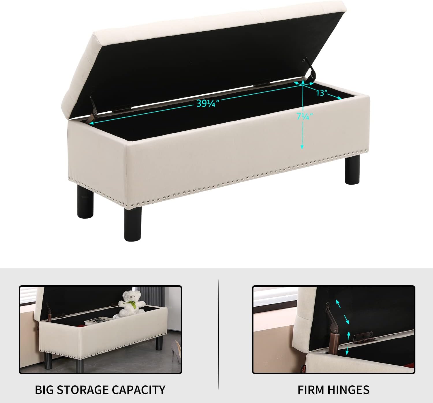 • Firm Hinges Construction : Crafted with firm hinges to support your daily flip for the durable usage. With premium linen-look fabric, this ottoman with storage for living room boasts long-lasting stability.