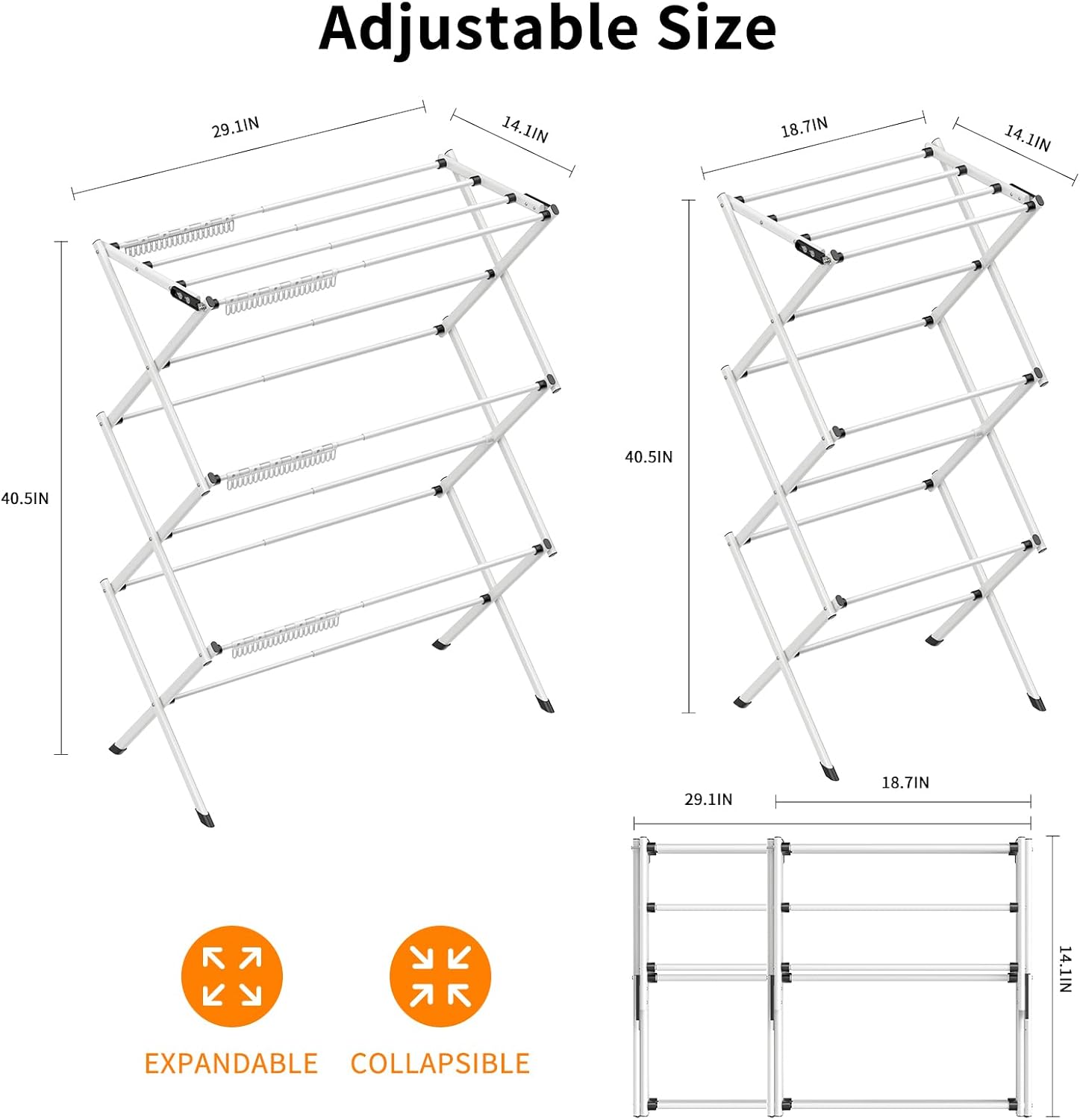 • ★ Retractable: Clothes rack size: L 19.1"-28.8" x W14.2" x H40". The retractable drying rack has a large drying space, which can meet all your clothes drying needs and adapt to different scenes.