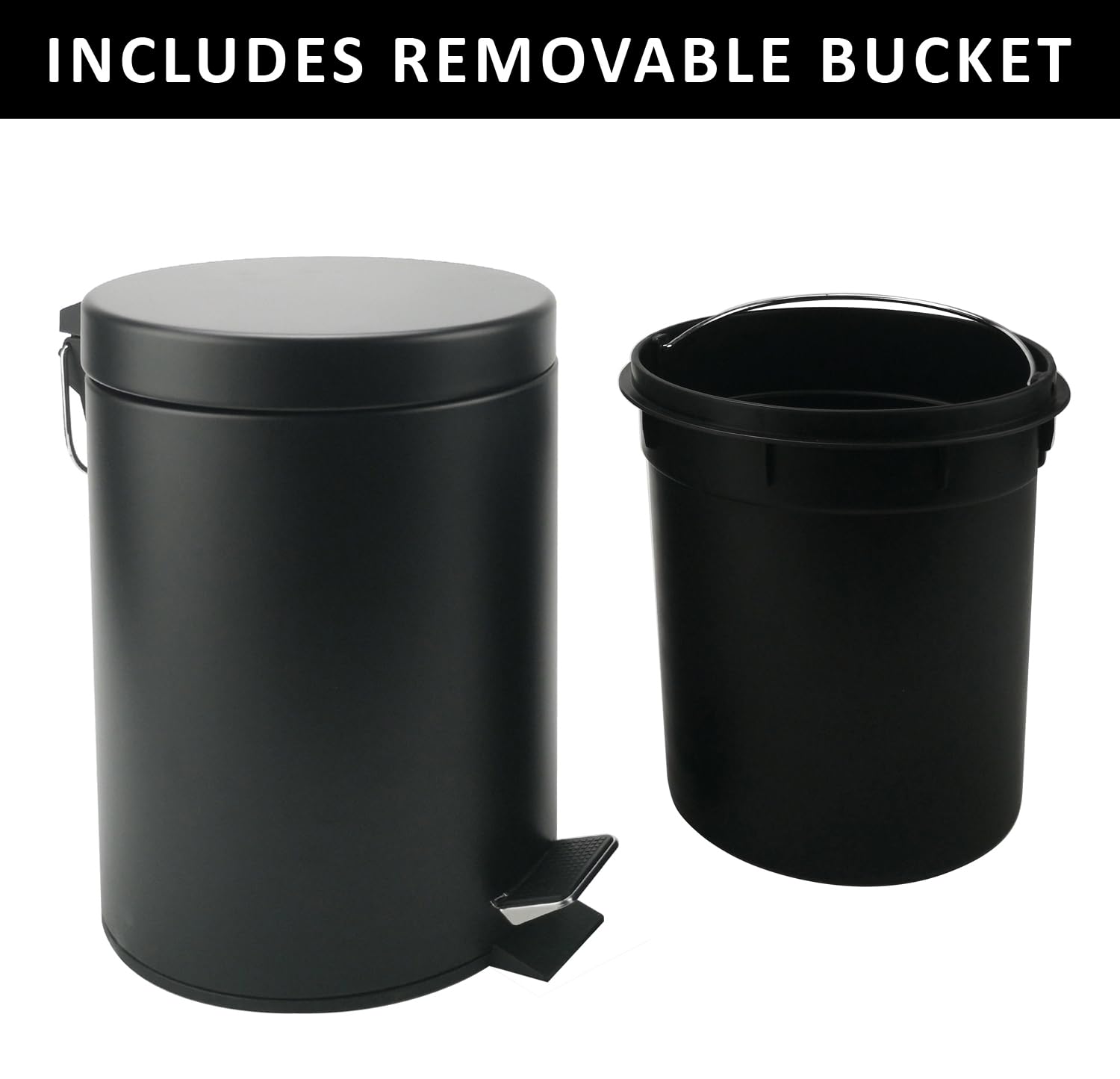 Stainless Steel Small Trash Can with Lid & Step Pedal - 5 Liters/1.3 Gallon Soft Close Waste Basket with Removeable Inner Bucket - Garbage Can for Bathroom, Bedroom, Kitchen & Office (Black)
