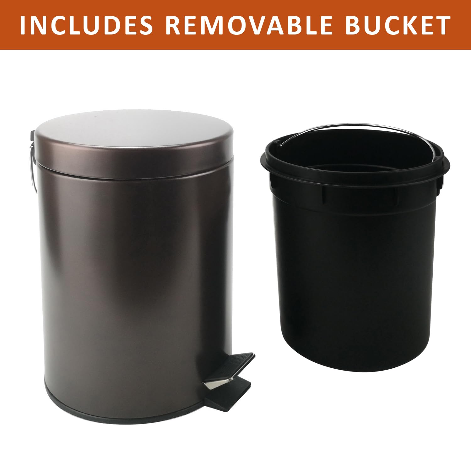 Stainless Steel Small Trash Can with Lid & Step Pedal - 5 Liters/1.3 Gallon Soft Close Waste Basket with Removeable Inner Bucket - Garbage Can for Bathroom, Bedroom, Kitchen & Office (Bronze)