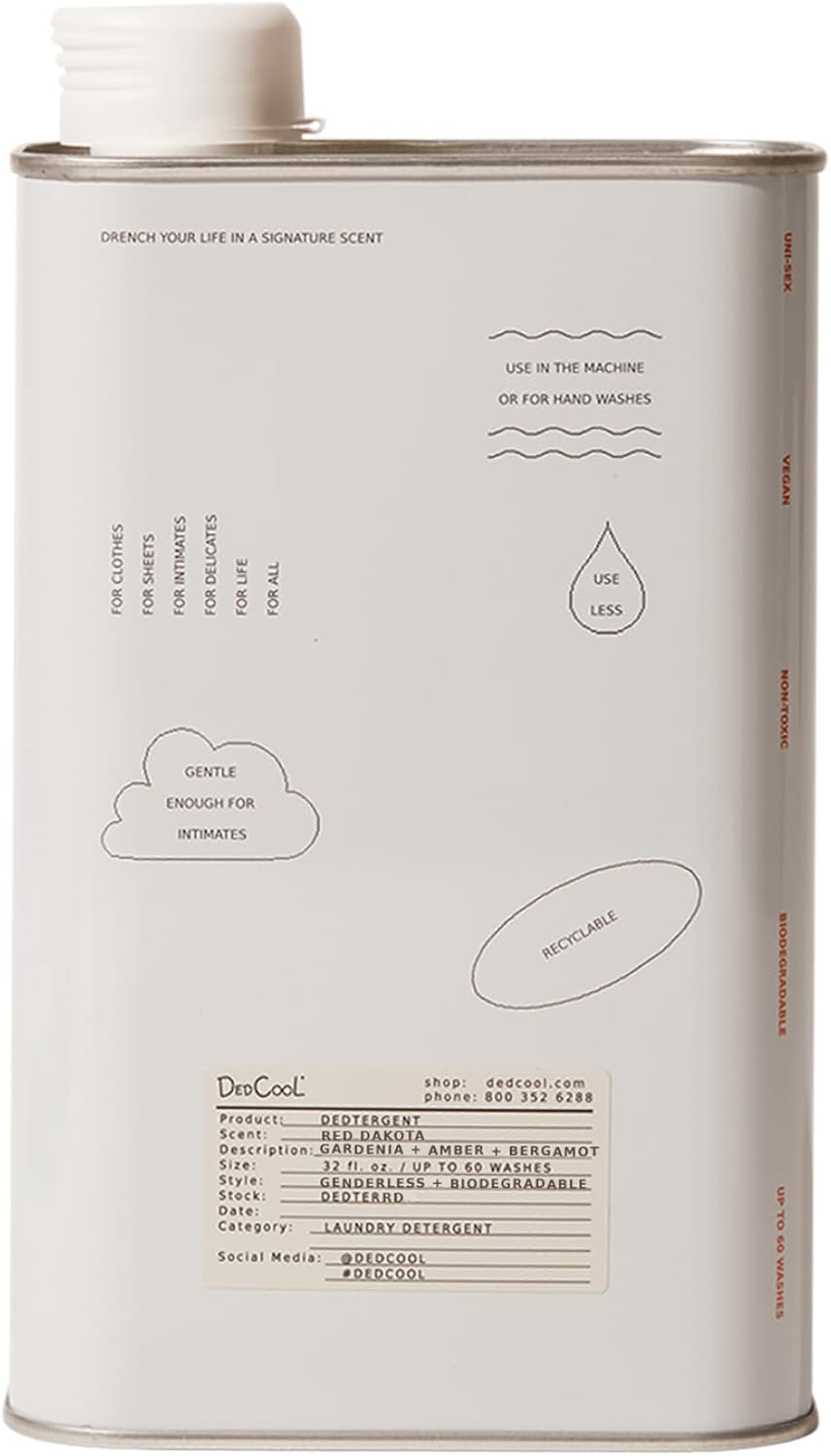 • GENTLE, PREMIUM CARE: Infused with plant-derived ingredients, this non-toxic, dye-free, and vegan detergent refreshes fabrics, softens clothing, and preserves colors while leaving garments lightly scented with DedCool’s signature fragrance.