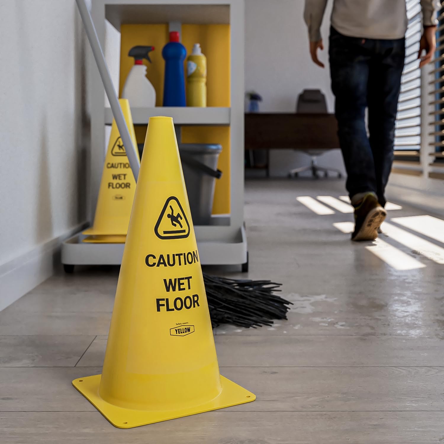 • ENHANCED VISIBILITY: Wet floor cones are more noticeable than flat wet floor signs. Their three-dimensional shape and bright color make them highly visible from various angles, ensuring that individuals can easily spot the warning and take necessary precautions.