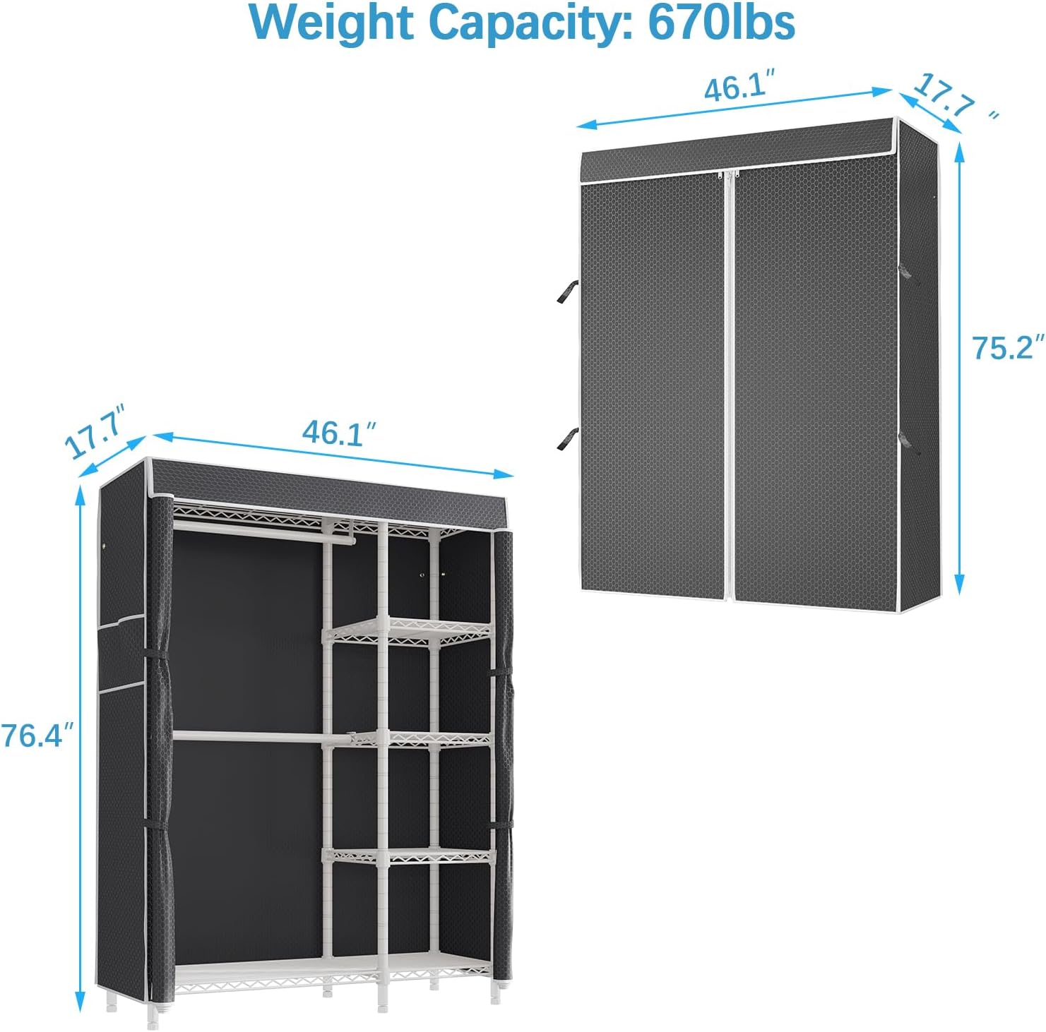 • 【Zippered Polyester Fabric Cover】Closet comes with upgraded polyester fabric cover, sturdy, wrinkle resistance, breathability keep garments dry. Easy to clean with damp cloth, and to keep your item away from dust