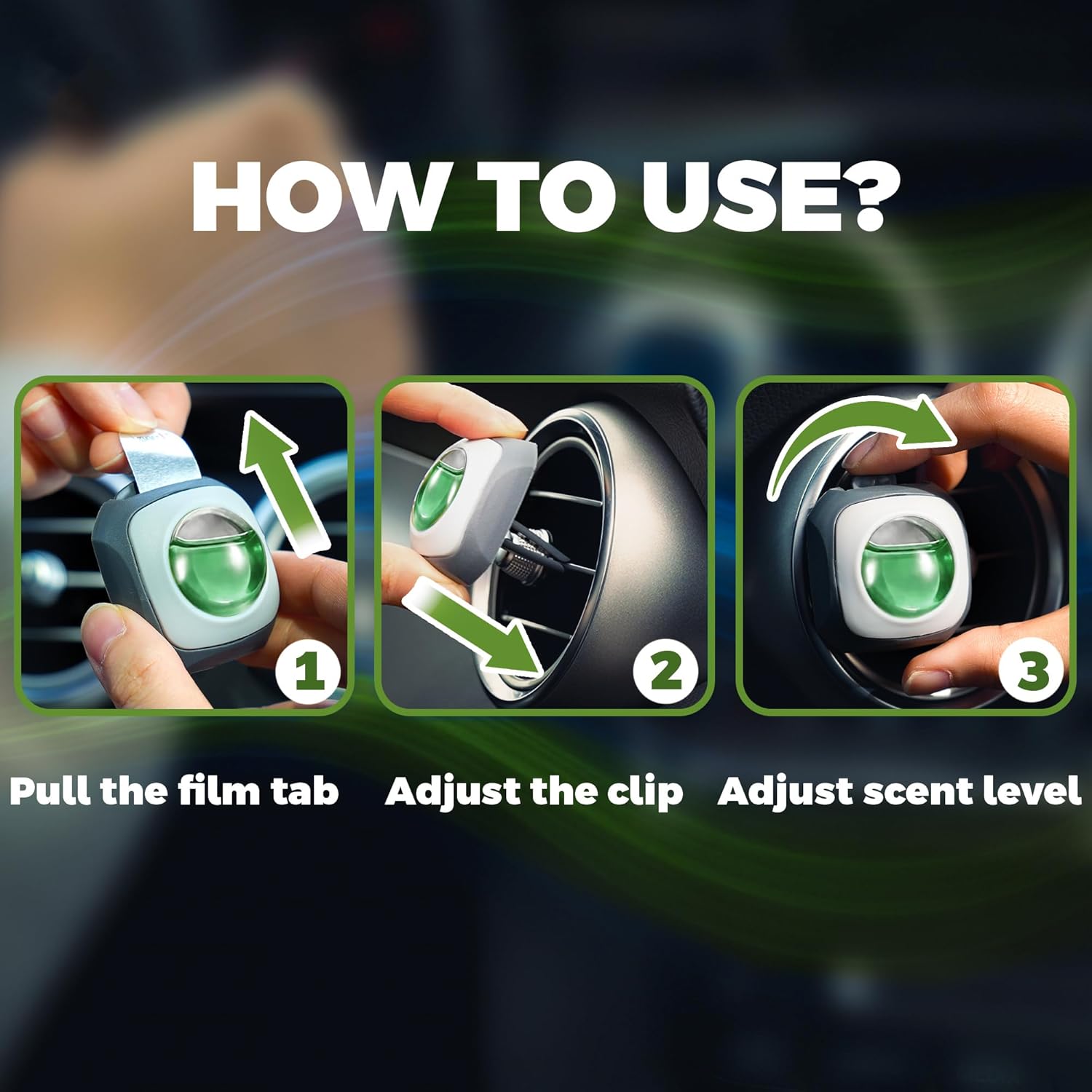 Air Jungles Green Tea Scent Car Air Freshener Clip, 6 Vent Clips, 4ml Each, Long Lasting Air Freshener, Up to 180 Days Car Refresher Odor Eliminator