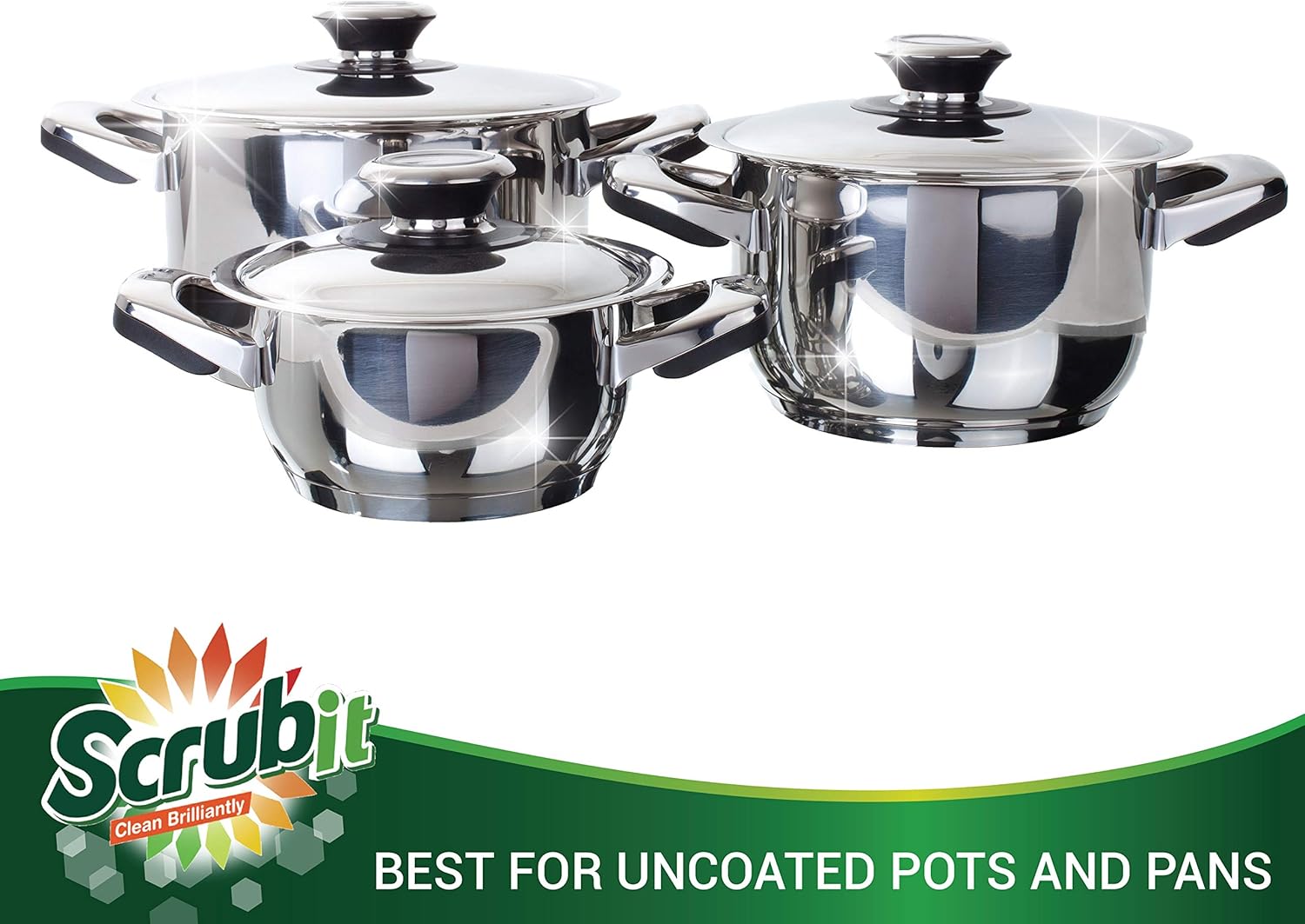 12 Pack Stainless Steel Scourers by Scrub It – Steel Wool Scrubber Pad Used for Dishes, Pots, Pans, and Ovens. Easy scouring for Tough Kitchen Cleaning. (XX Large (100 gram))