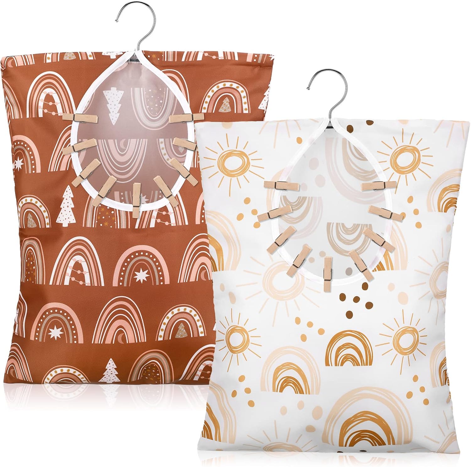 Woanger 2 Pcs Clothes Pin Bag Clothespin Holder 15 x 11 in to Hang on Line Clothes Pin Hanging Bag for Clothesline Outdoor Storage Organizer Basket with Large Opening(Cute Style)