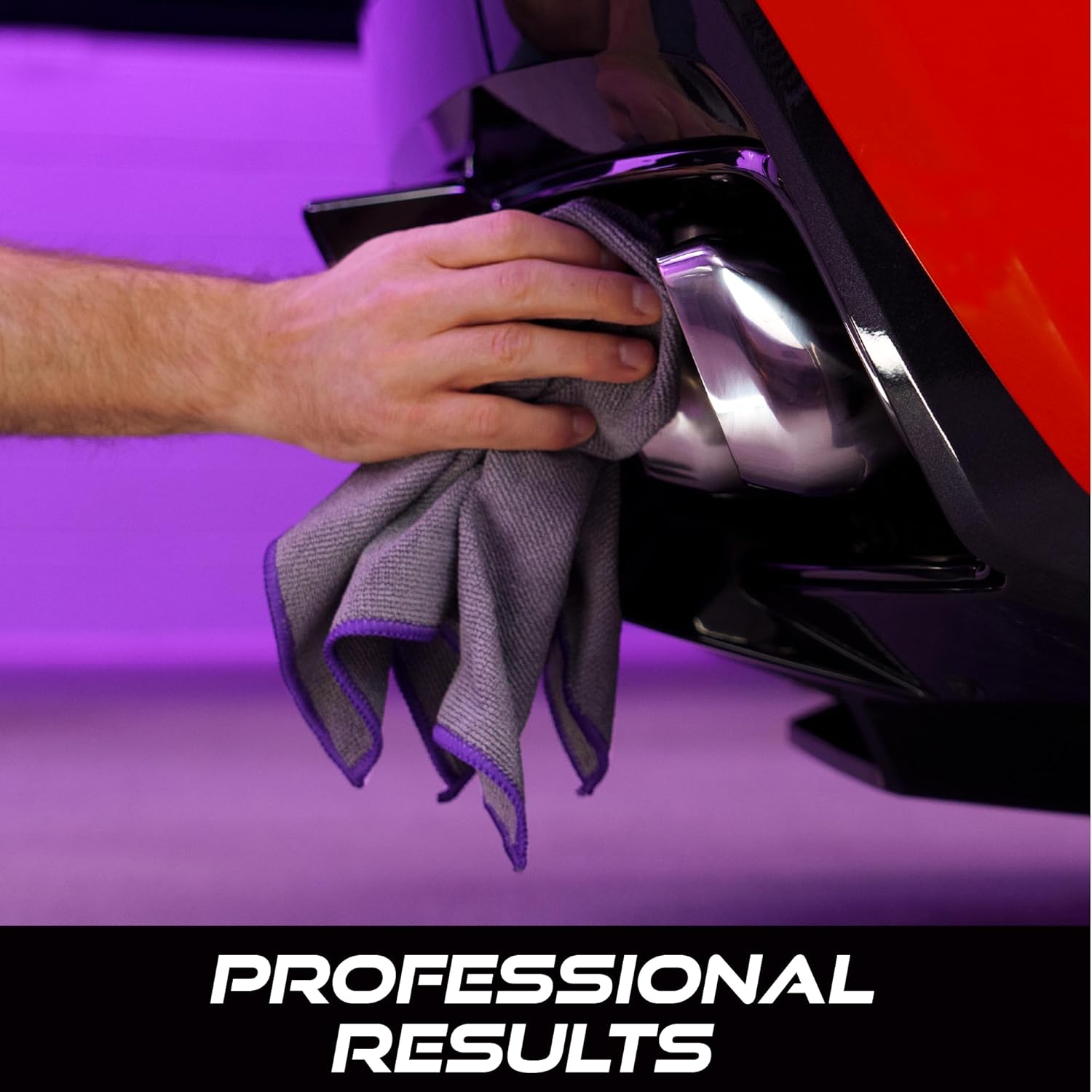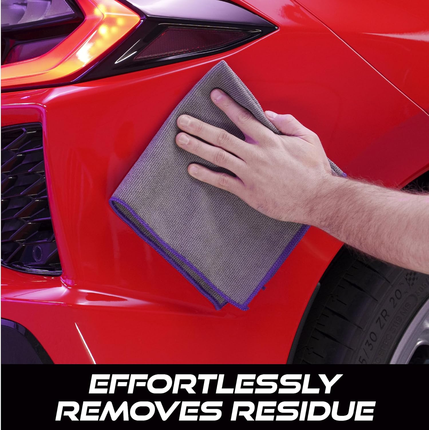 • Microfiber cleaning cloth with a unique zig-zag texture to easily cut through and break up cured car polish and car wax for a professional detail, at home