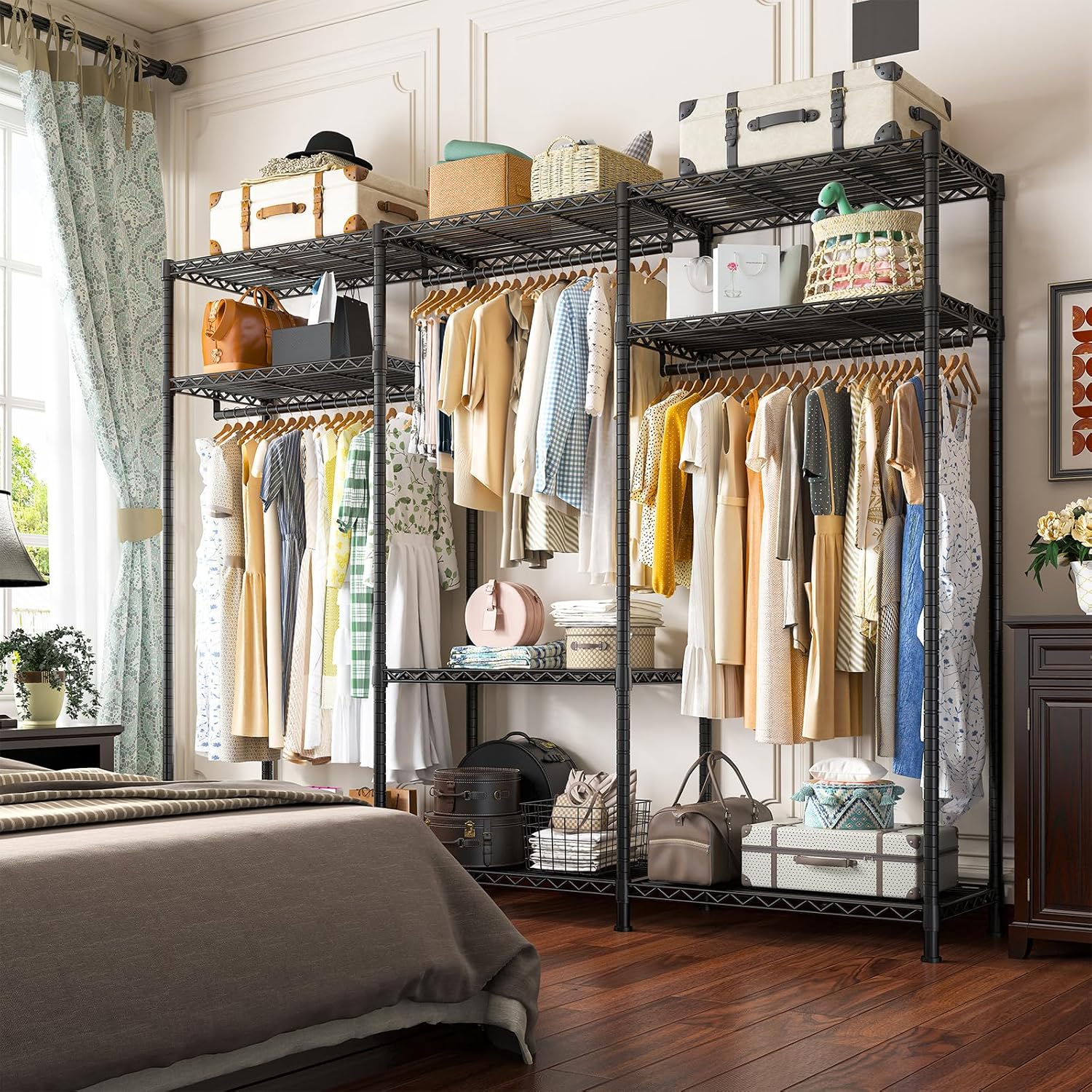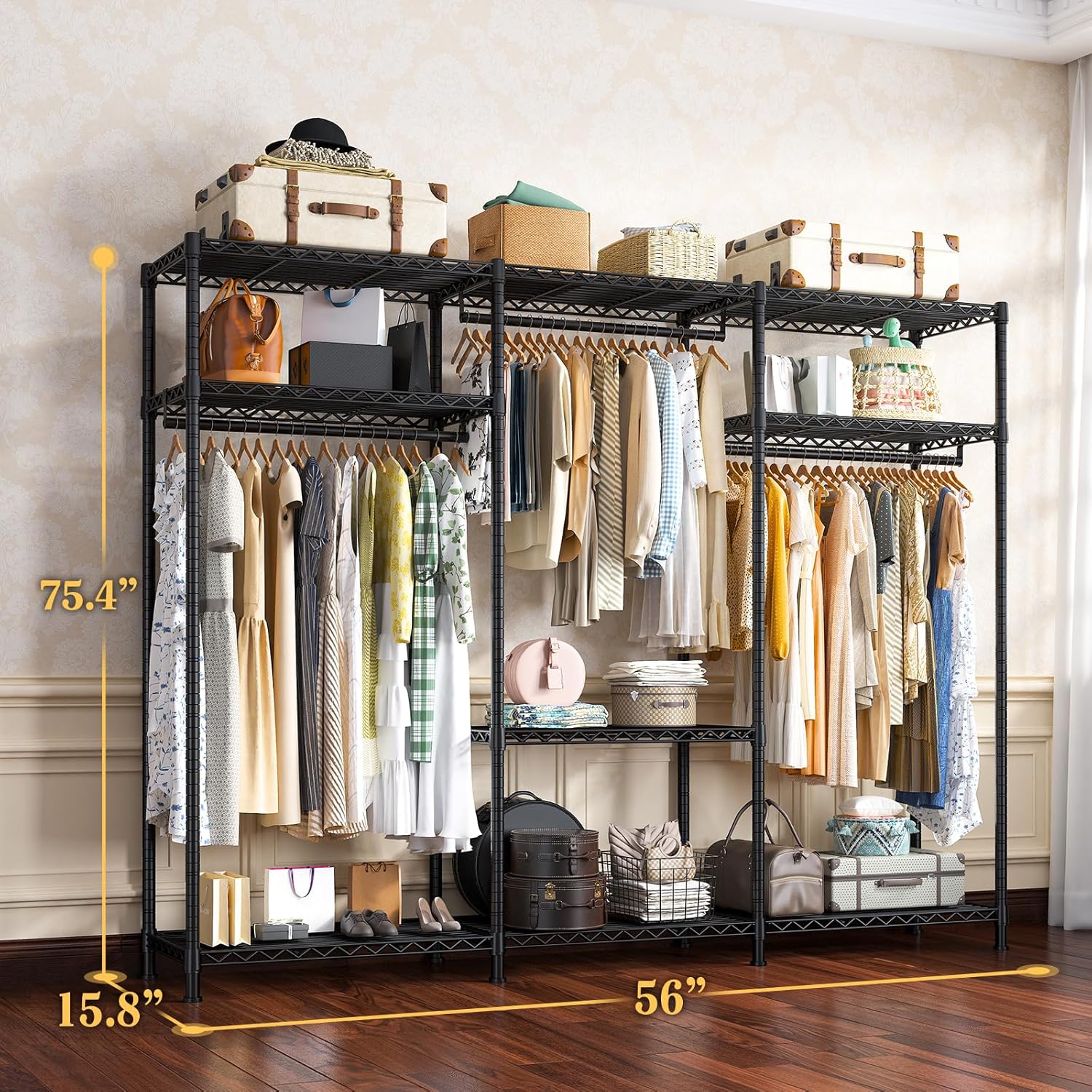 Raybee Clothes Rack Heavy Duty Load 795LBS Portable Clothing Racks for Hanging Clothes Adjustable Garment Rack, 56" W X16 D X 75.5" H Black