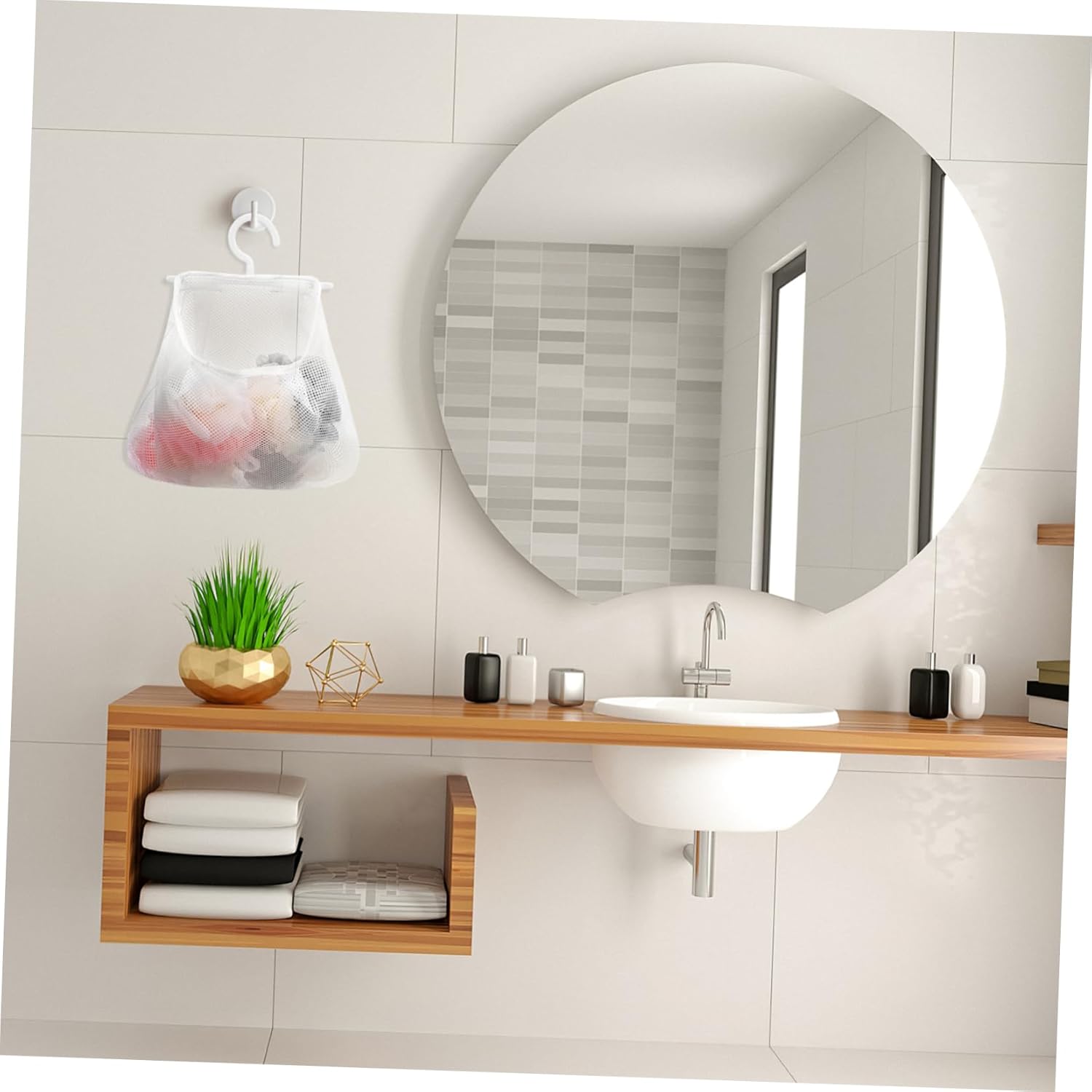 • Vegetable Pouch: Versatile mesh bag: This hanging mesh bag can not only hold clothespins, but also bra, socks, underwear, garlic and onions.