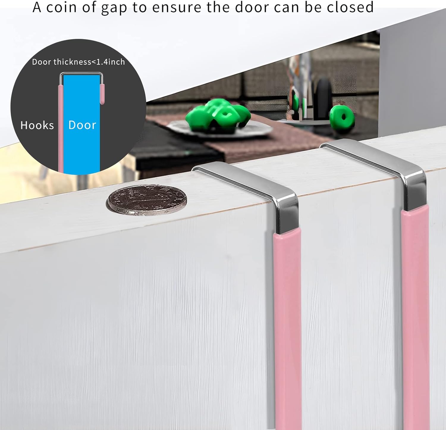 FYY Over The Door Hooks, 4 Pack Door Hangers Hooks with Rubber Prevent Scratches Heavy Duty Organizer Hooks for Living Room, Bathroom, Bedroom Hanging Clothes, Towels, Hats, Coats, Bags Pink