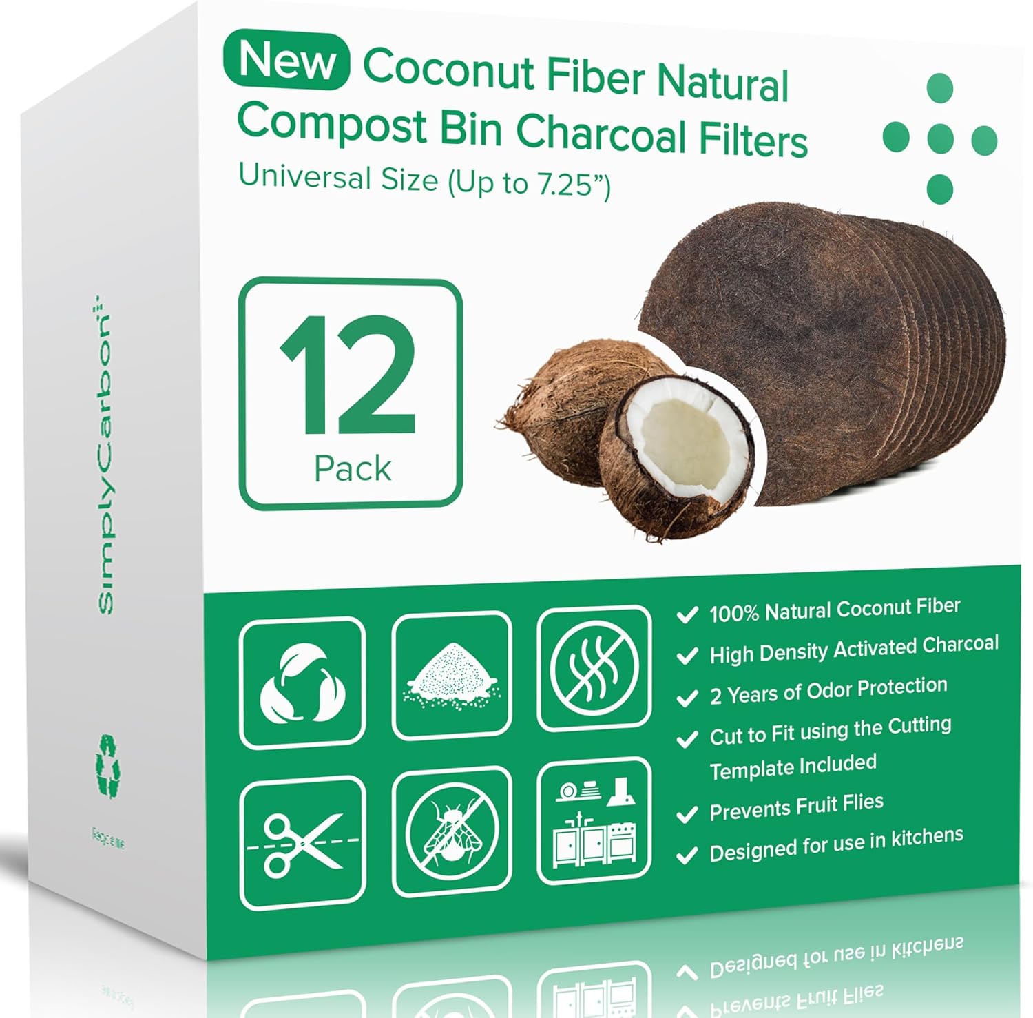 • ✅ WORLD FIRST BIODEGRADABLE FILTER: Simply Carbon have developed the world’s first activated charcoal compost bin filter made using coconut fibers. The filter is 100% natural and biodegradable. Avoid traditional filters which are made with Terylene polyester, a thermoplastic which cannot be recycled and will not decompose in landfill.