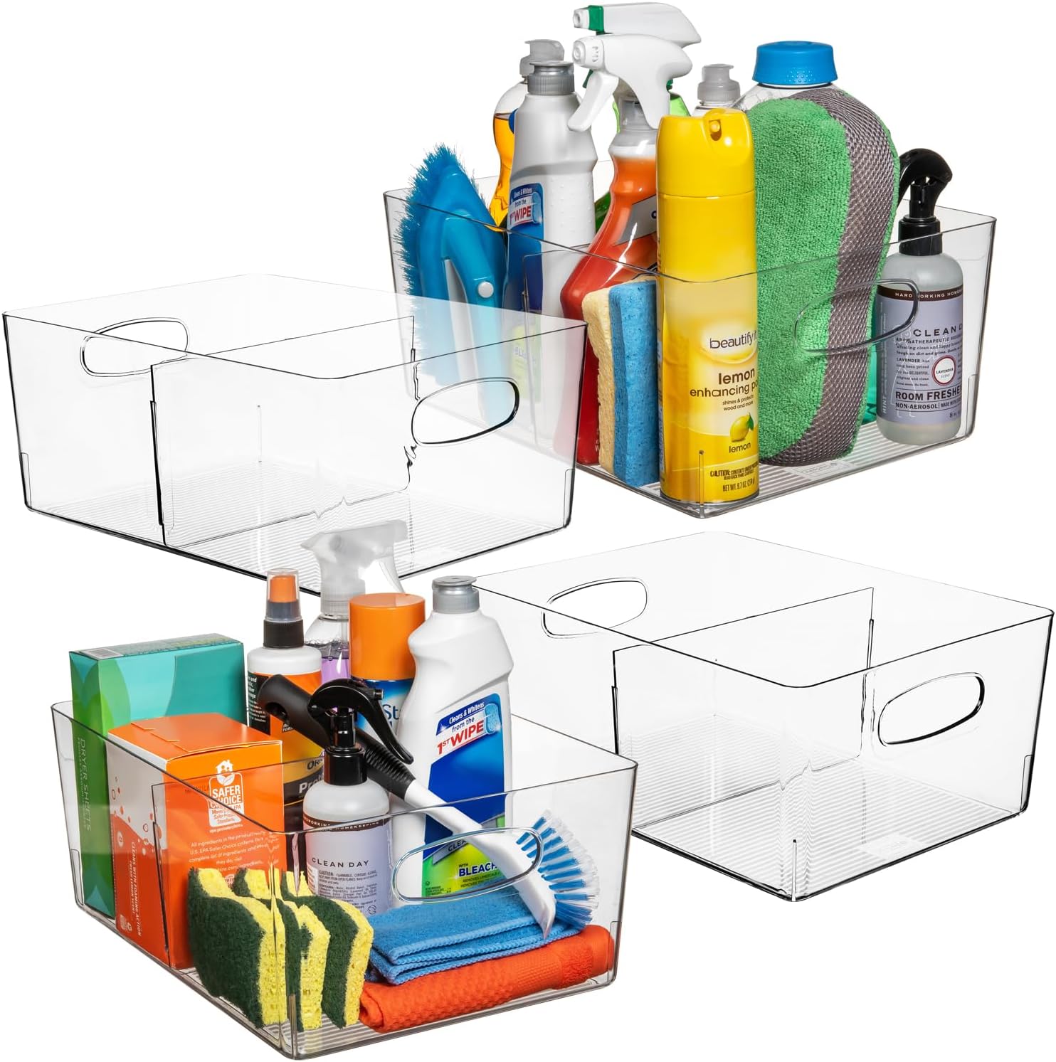 ClearSpace Plastic Storage Bins with Divider – Perfect Kitchen Organization or Pantry Storage – Fridge Organizer, Pantry Organization and Storage Bins, Cabinet Organizers