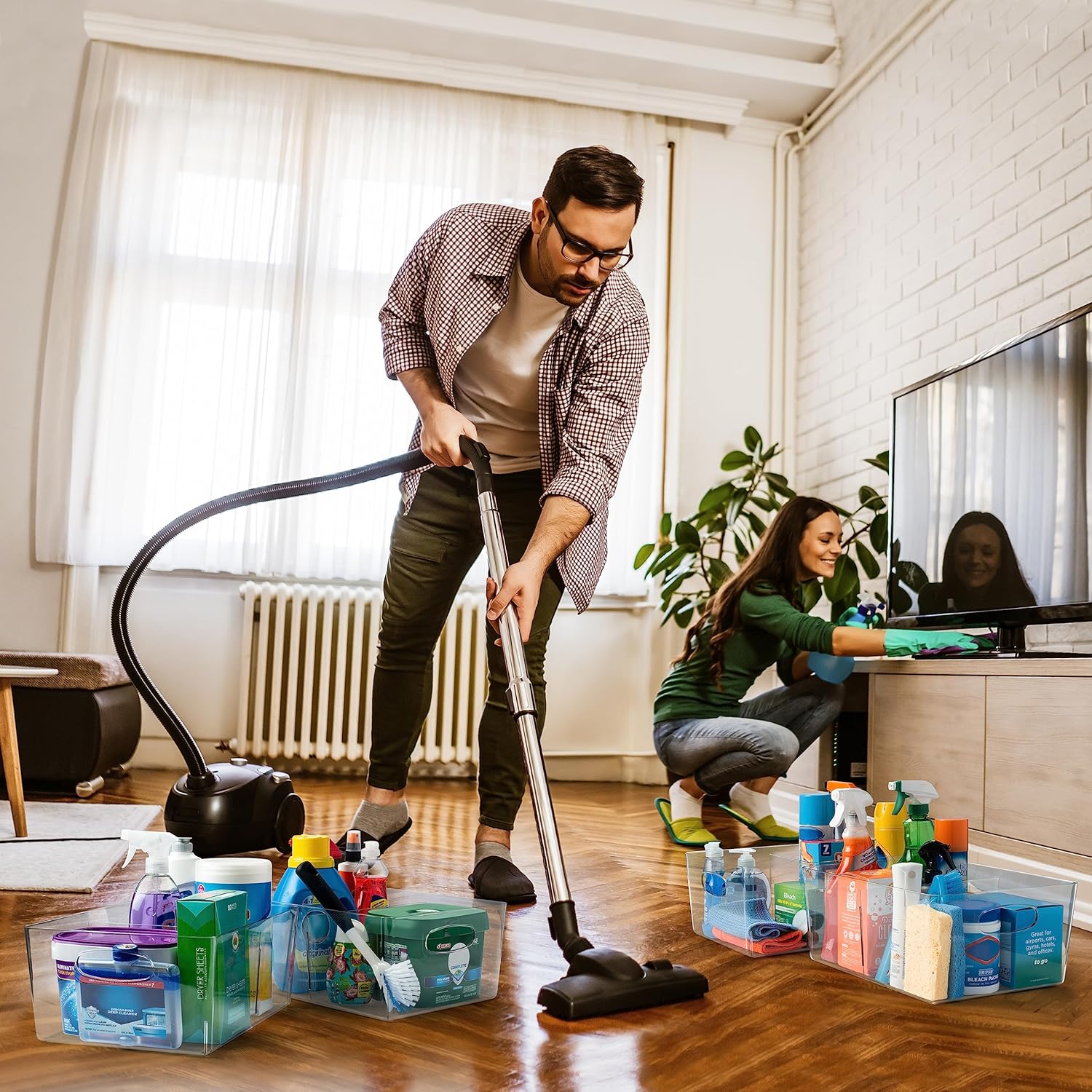 • PORTABLE & STACKABLE – Built-in, easy-grip side handles make it easy to transport from place to place. They also come with a removable divider! These plastic storage bins are perfect for pantry organization and storage or kitchen organization. These clear storage bins are great for anywhere in your home.