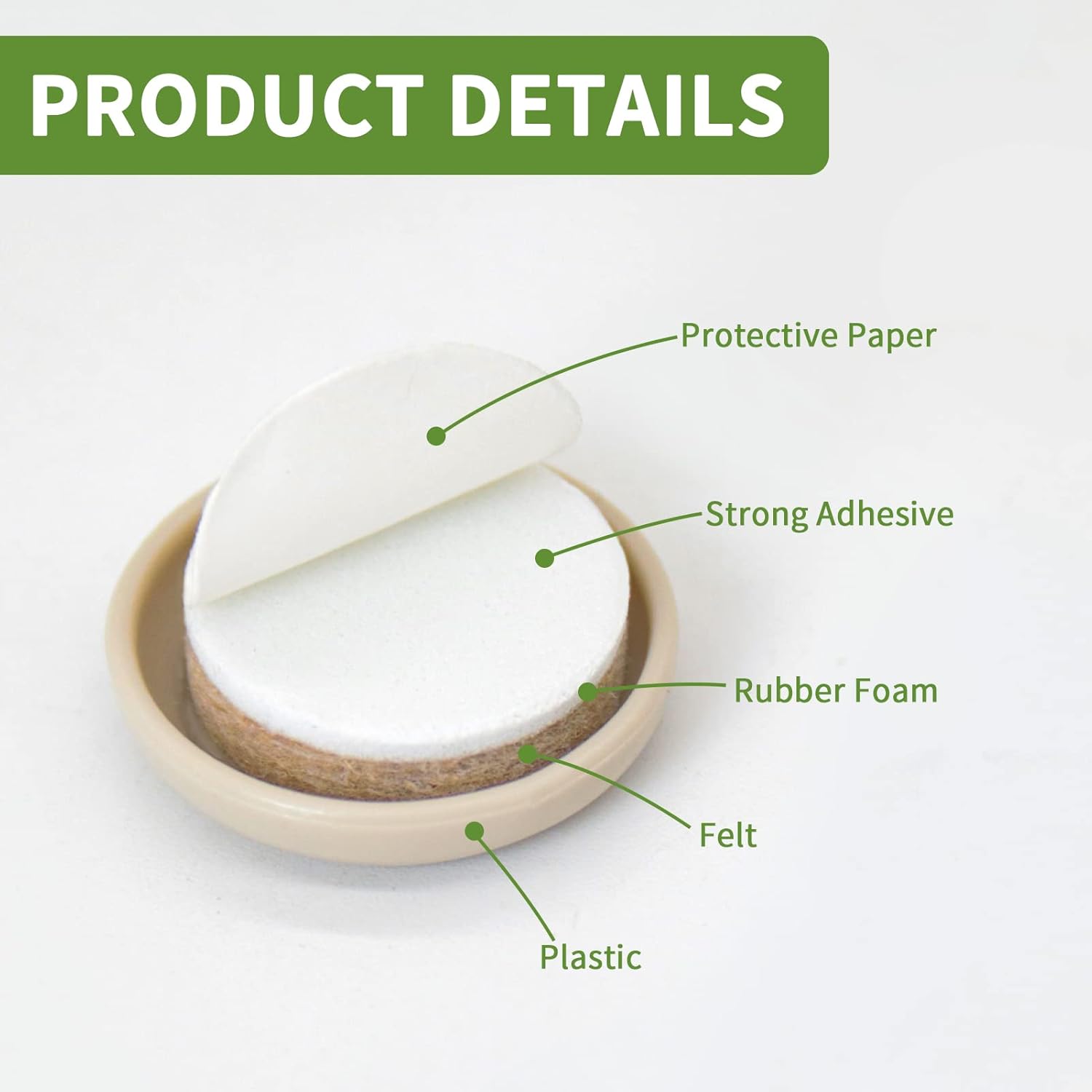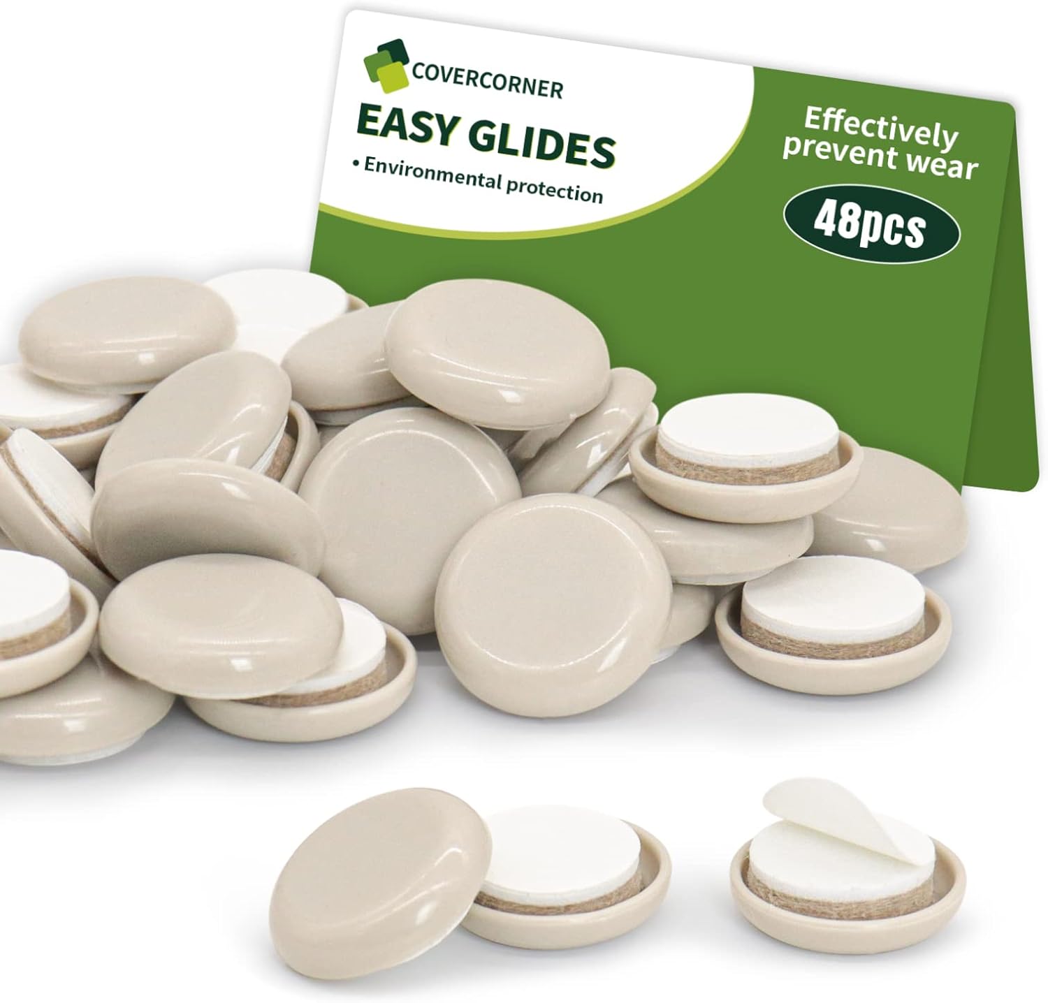 • 48 pcs 1" Plastic Chair Glides are made of PREMIUM EXTRA STRONG FELT, DURABLE FOAM, and SMOOTH PLASTIC - our furniture moving sliders WILL NOT Wear Out & Provide Solid Protection!