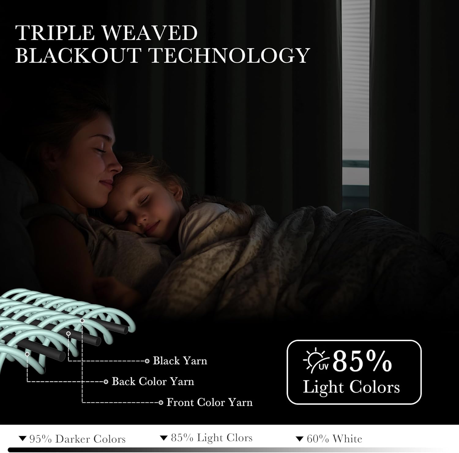 • LIGHT CONTROL - Adopt the triple weave technology, the heavy and soft fabric can prevent harsh sunlight and UV ray from passing through the windows. Dark color works better than the light one