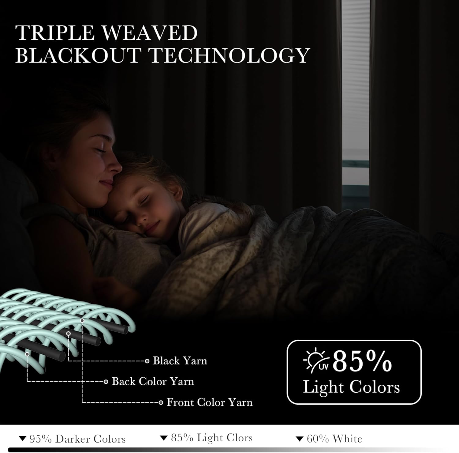 • LIGHT CONTROL - Adopt the triple weave technology, the heavy and soft fabric can prevent harsh sunlight and UV ray from passing through the windows. Dark color works better than the light one