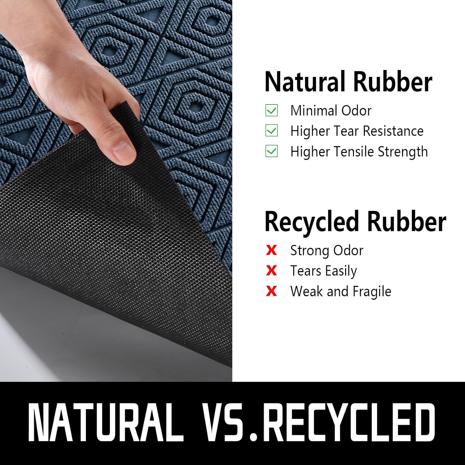• [CAPTURE DIRT AND MOISTURE] Yimobra front door entryway mat outdoor with unique pattern design, forming a detention dam extending in all directions, helping to capture dirt, dust, gravel, mud, sand, grass or other messy debris and prevent them from entering Indoor; The surface of floor mat beautifully woven polyester fabric absorbs moisture, and the sturdy oblique rubber edge will not accumulate water in rainy and snowy days, keeping your home dry and clean