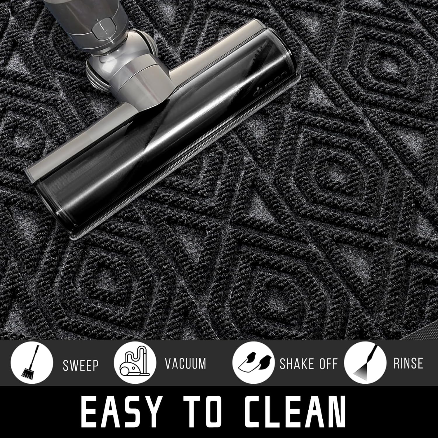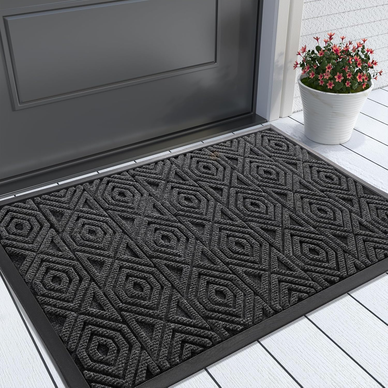 • [CAPTURE DIRT AND MOISTURE] Yimobra front door entryway mat outdoor with unique pattern design, forming a detention dam extending in all directions, helping to capture dirt, dust, gravel, mud, sand, grass or other messy debris and prevent them from entering Indoor; The surface of floor mat beautifully woven polyester fabric absorbs moisture, and the sturdy oblique rubber edge will not accumulate water in rainy and snowy days, keeping your home dry and clean