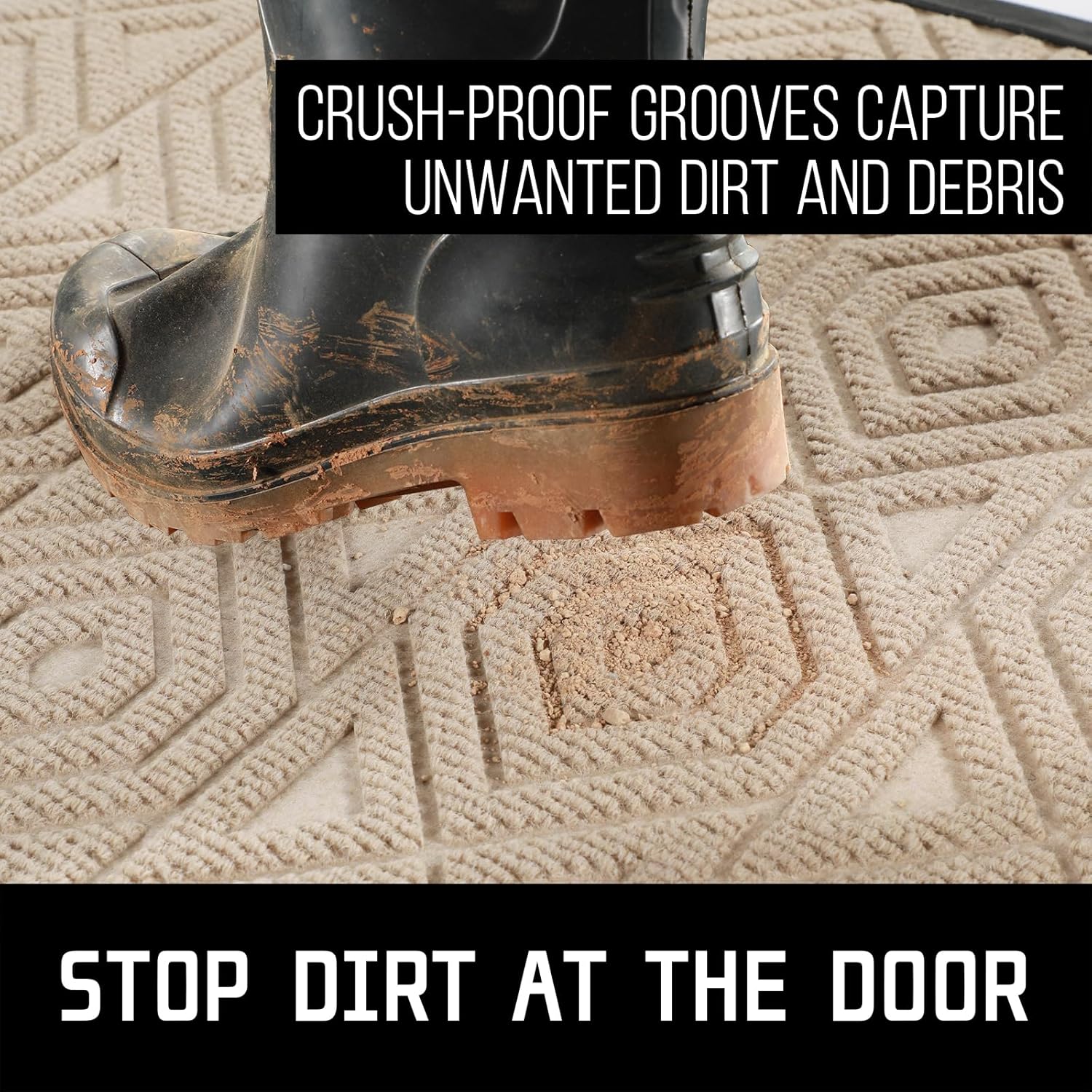 • [CAPTURE DIRT AND MOISTURE] Yimobra front door entryway mat outdoor with unique pattern design, forming a detention dam extending in all directions, helping to capture dirt, dust, gravel, mud, sand, grass or other messy debris and prevent them from entering Indoor; The surface of floor mat beautifully woven polyester fabric absorbs moisture, and the sturdy oblique rubber edge will not accumulate water in rainy and snowy days, keeping your home dry and clean