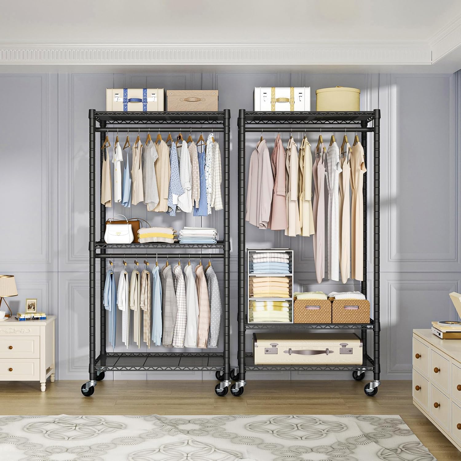 • [Stable & Sturdy]: The quality closet garment rack is made from long-lasting carbon steel, ensuring it can withstand the weight of your clothes