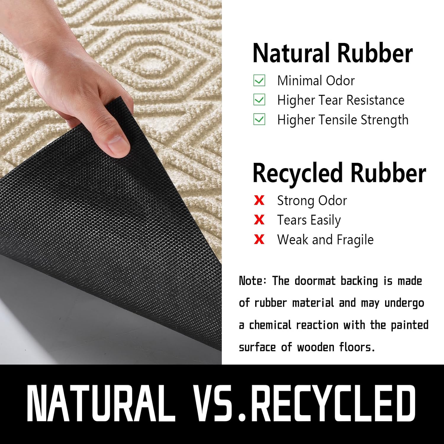 • [CAPTURE DIRT AND MOISTURE] Yimobra front door entryway mat outdoor with unique pattern design, forming a detention dam extending in all directions, helping to capture dirt, dust, gravel, mud, sand, grass or other messy debris and prevent them from entering Indoor; The surface of floor mat beautifully woven polyester fabric absorbs moisture, and the sturdy oblique rubber edge will not accumulate water in rainy and snowy days, keeping your home dry and clean