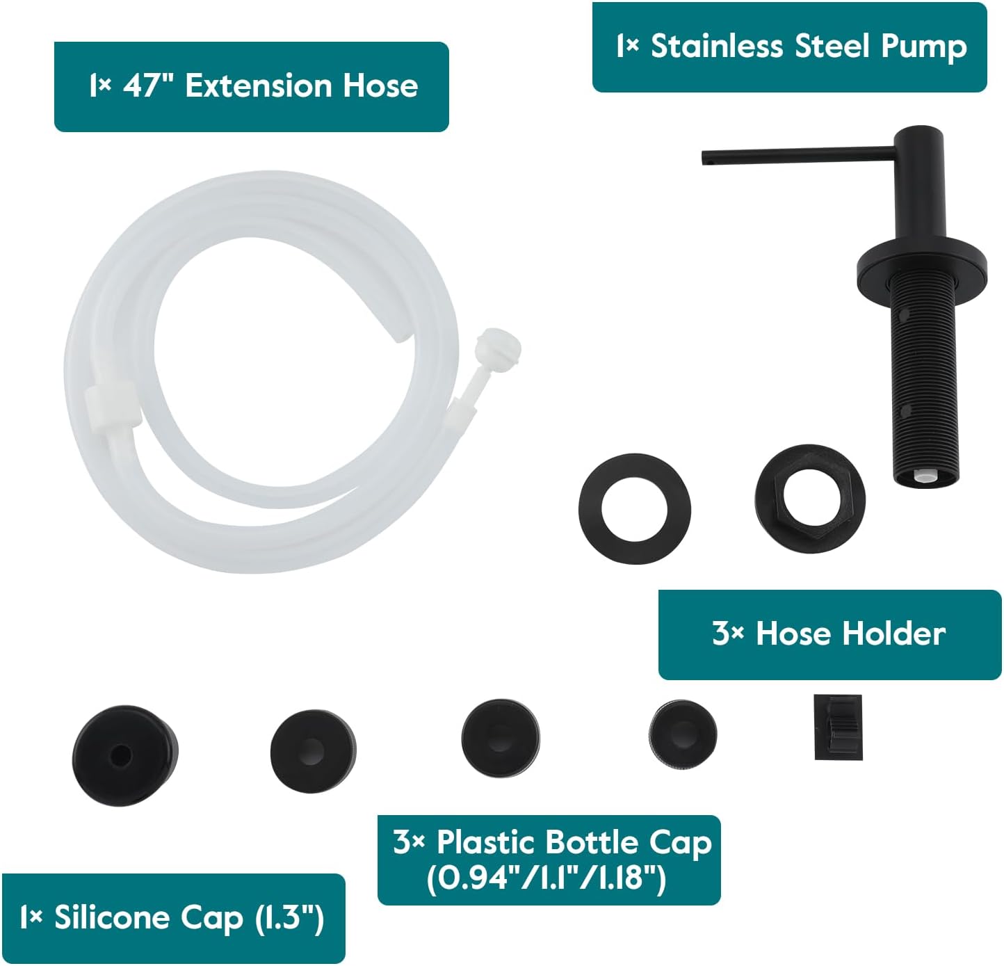 • No More Messy Refills: Our sink soap dispenser pump is equipped with a 47" extension tube, you can insert the tube directly into the large dish soap dispenser. No need to refill small canisters anymore