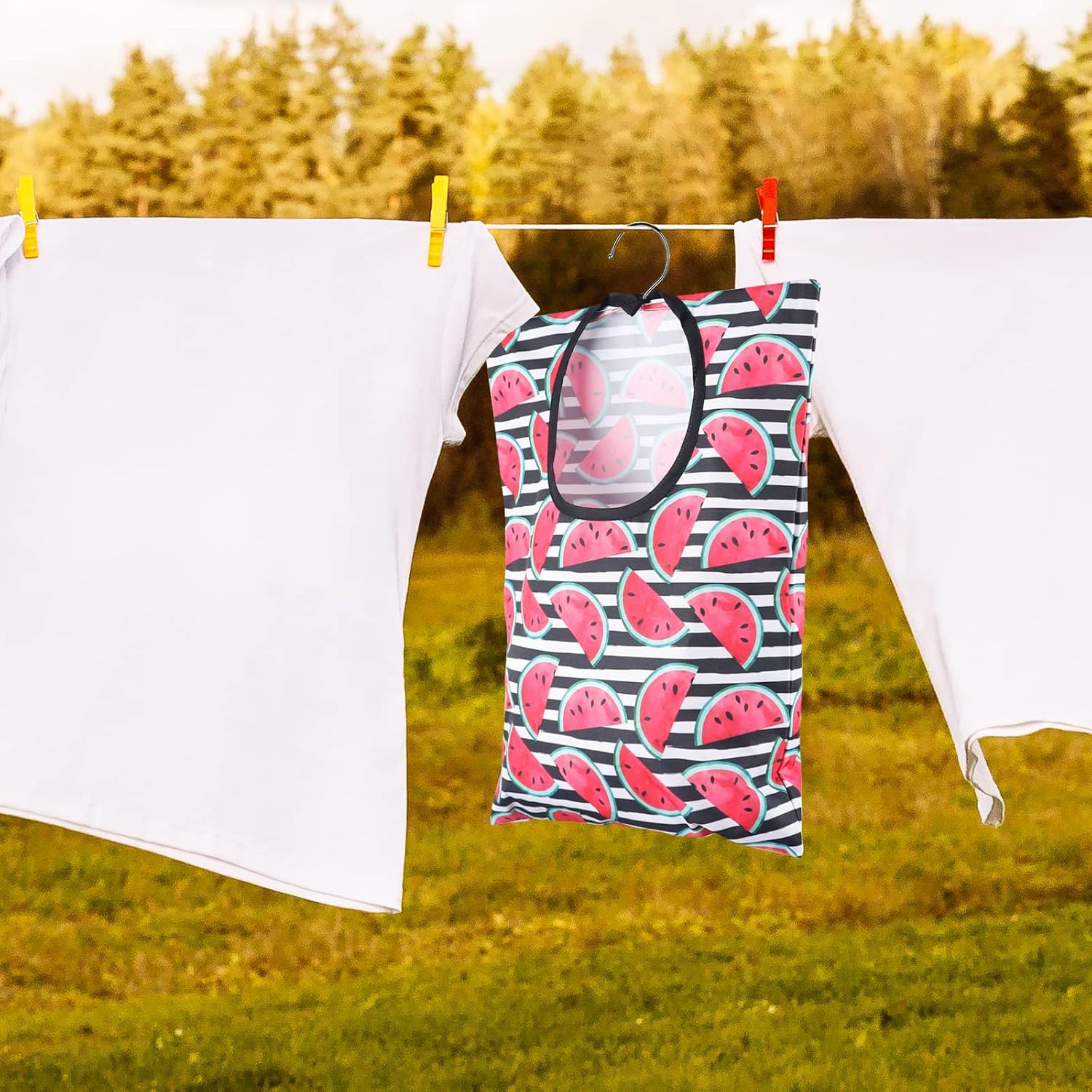 2 Pcs Watermelon Clothespin Bag with Hanging Hook 15 X 11 Inch Watermelon Laundry Canvas Clothes Pin Holder Waterproof Clothespin Bag Clothespin Storage Organizer with A Large Opening (Watermelon)