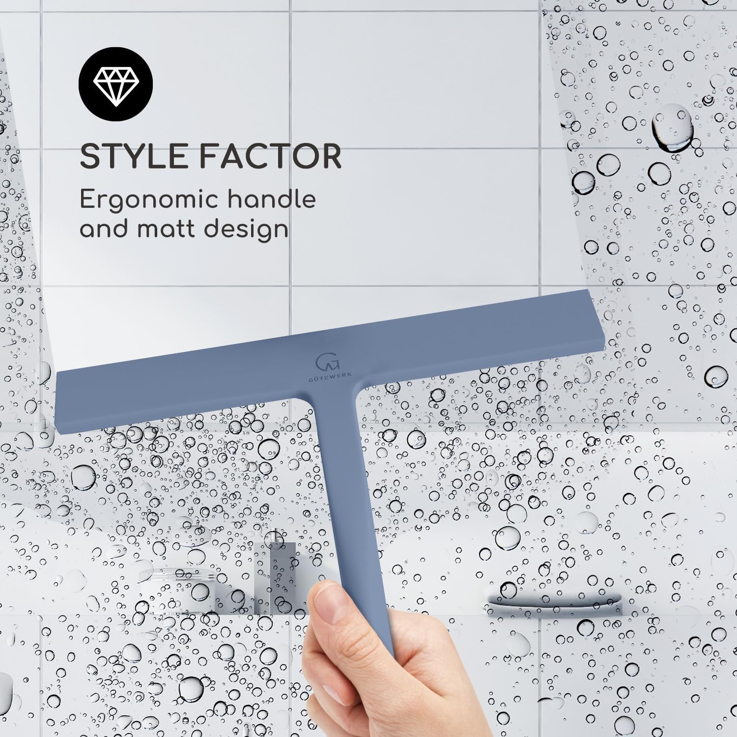 • MINIMALIST TIMELESS DESIGN - The GÜTEWERK glass squeegee is crafted with a matte white finish that impresses with its elegant timeless and smart design. In addition, the chrome-colored stainless-steel hook integrates well with any modern bathroom.