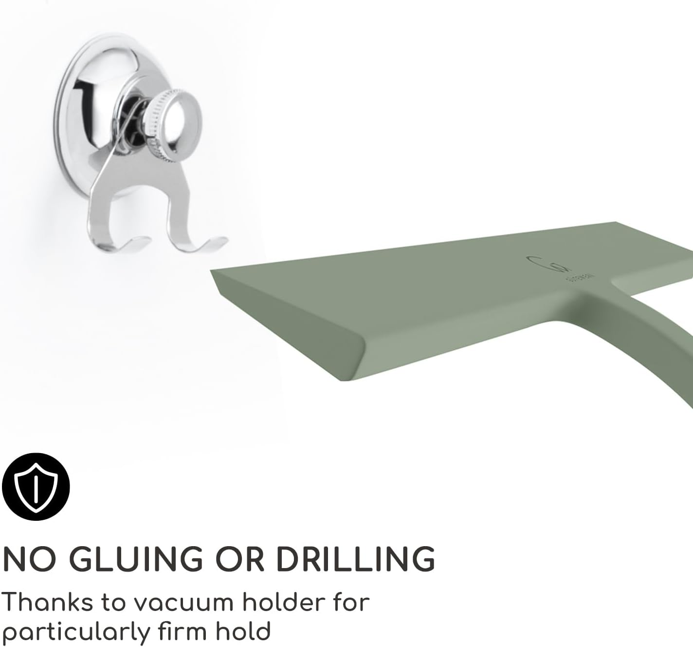 • SUPER STRONG SUCTION HOOK - No drilling or gluing required! You can easily remove and reattach the squeegee stainless steel hook to smooth surfaces such as panes, tiles, shower walls, shower glass surfaces, doors, cubicles, and enclosures.