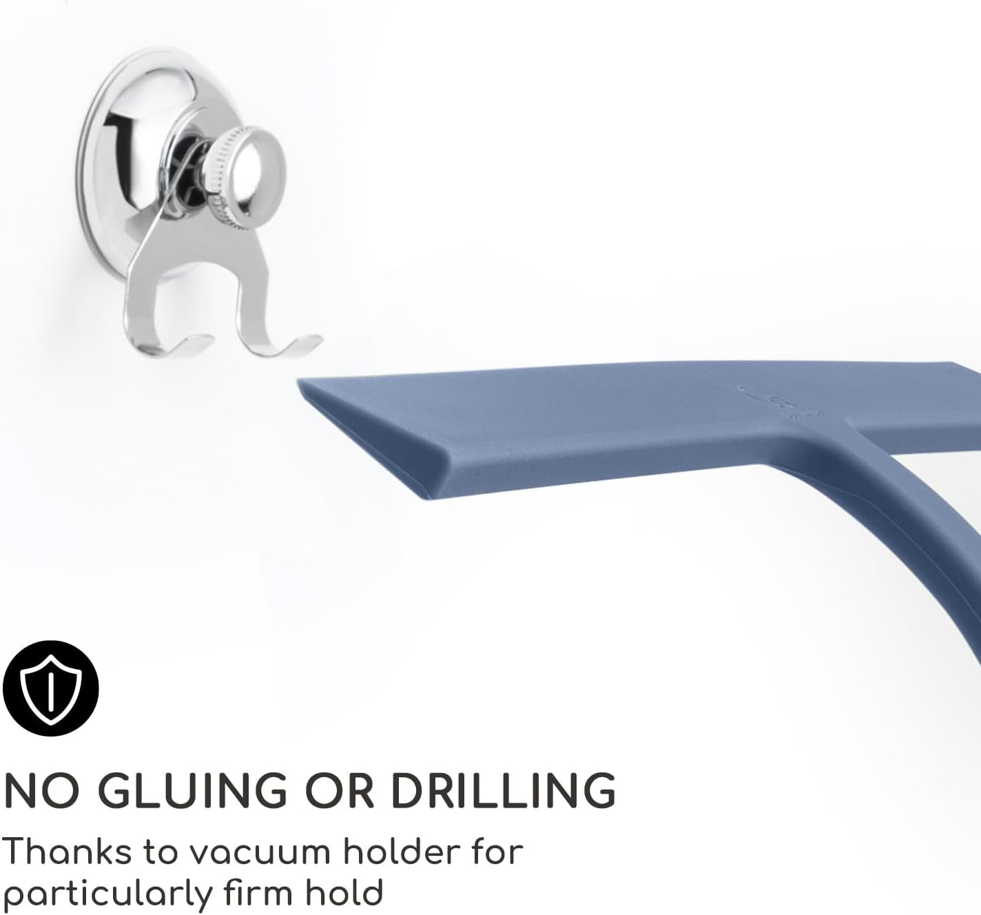 • SUPER STRONG SUCTION HOOK - No drilling or gluing required! You can easily remove and reattach the squeegee stainless steel hook to smooth surfaces such as panes, tiles, shower walls, shower glass surfaces, doors, cubicles, and enclosures.
