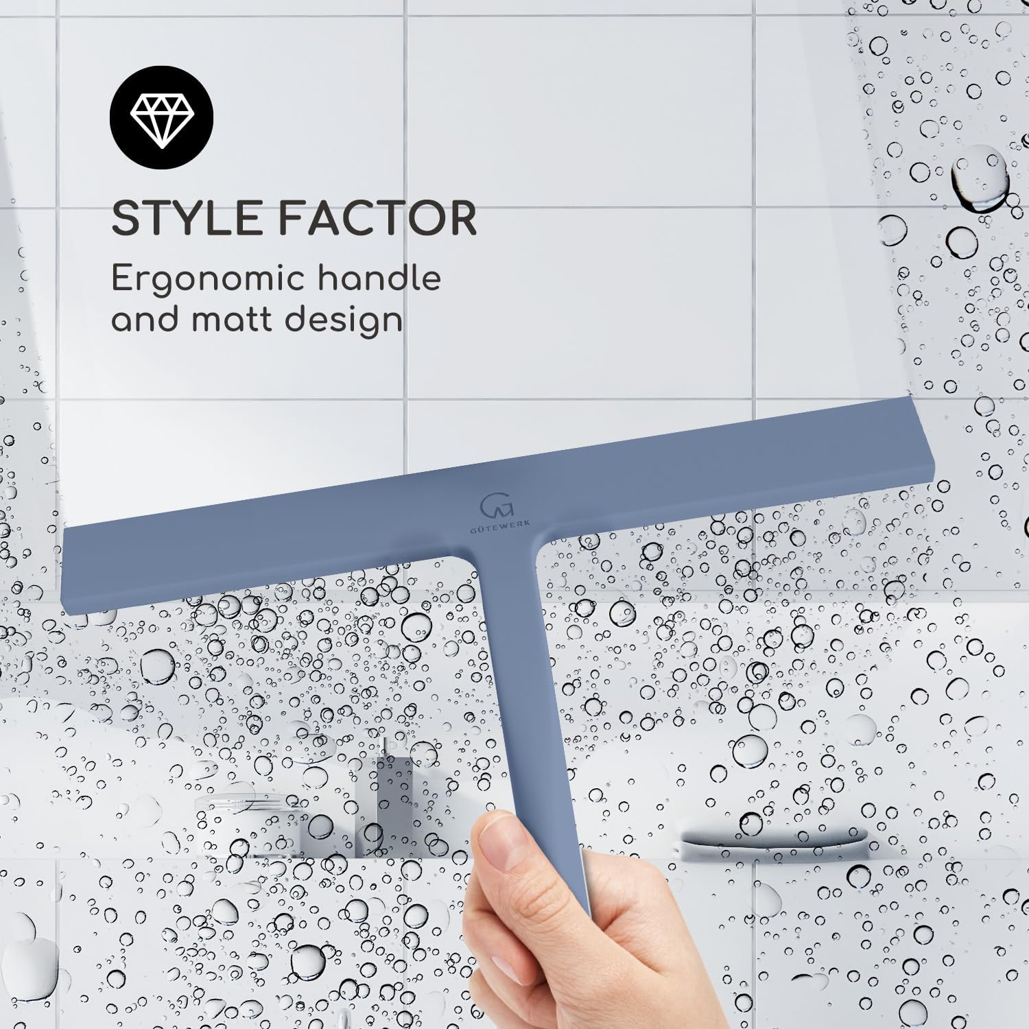 • MINIMALIST TIMELESS DESIGN - The GÜTEWERK glass squeegee is crafted with a matte white finish that impresses with its elegant timeless and smart design. In addition, the chrome-colored stainless-steel hook integrates well with any modern bathroom.