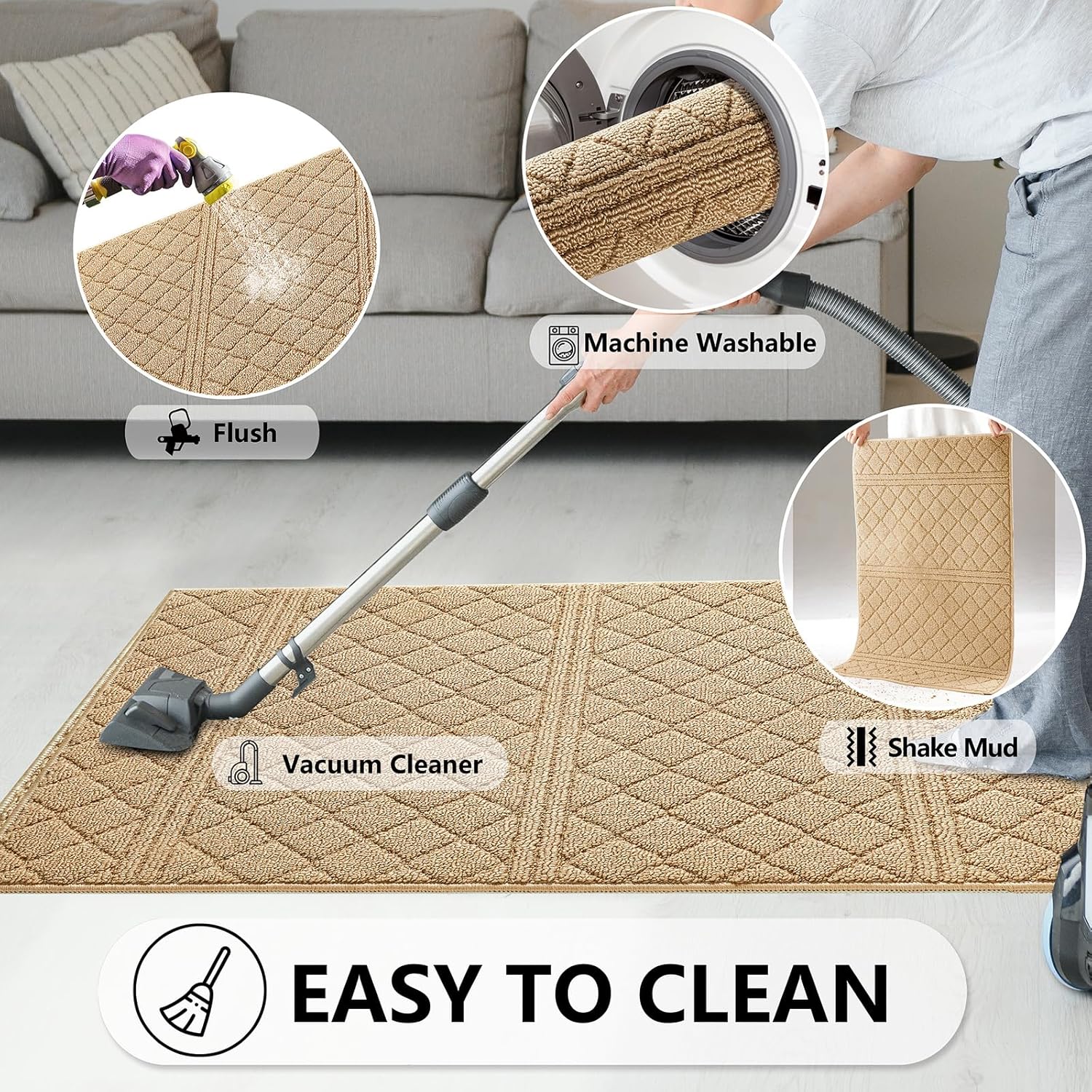 • 【PET FRIENDLY】Our entryway rugs are designed with your whole family in mind. Which Made of premium polypropylene fabric with reinforced overlock binding edges, they are much less likely to get caught on claws. This makes them an ideal choice for households with furry friends, keeping your floors clean and your pets comfortable with our durable, pet-friendly throw rugs and area rugs.