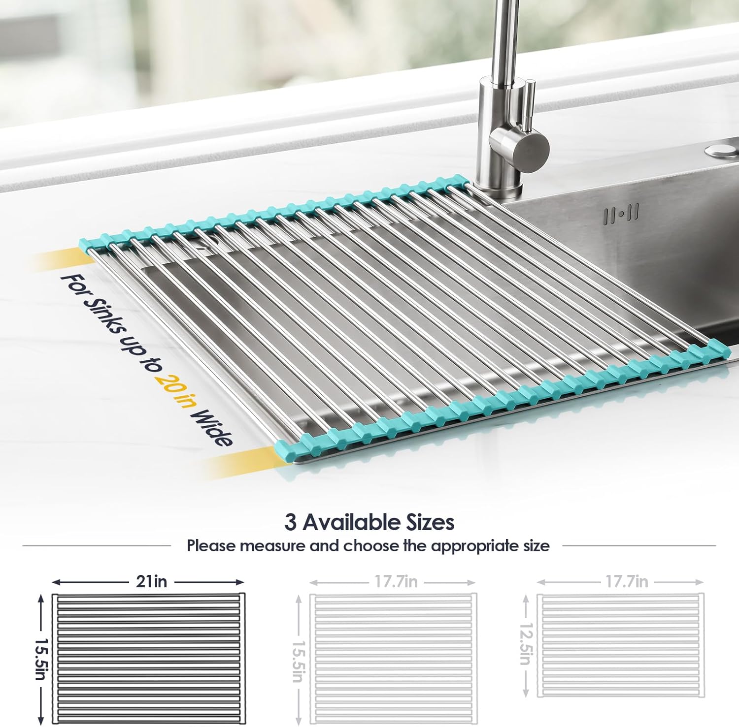 • [Universal Fit] - Choose from our three sizes: 17.7x12.5in, 17.7x15.5in, 21x15.5in to fit your sink. Confirm sink size and select from options above on this page. Current selection: 21x15.5 in