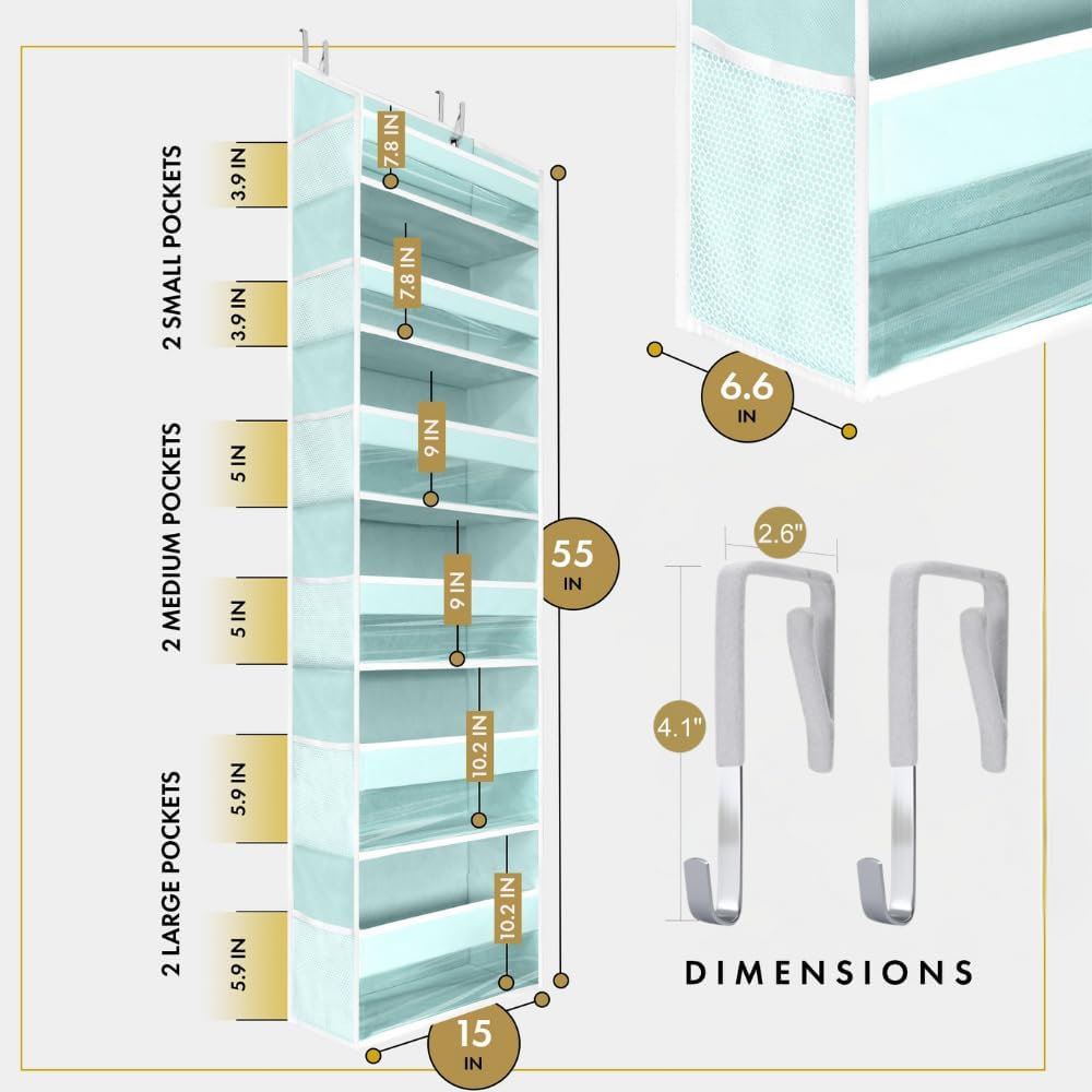 • 🏡Premium Closet Organizers And Storage: Crafted from the highest quality non-woven fabric, Homelux Theory's Over Door Organizer Hanging Storage solution has exceptional durability and moisture-proof properties, all while maintaining a lightweight, breathable, and luxuriously soft-to-touch feel. Measuring 55"x14"x6.7", this behind the door organizer, bathroom door organizer and diaper storage organizer making it an absolute small closet organizer.