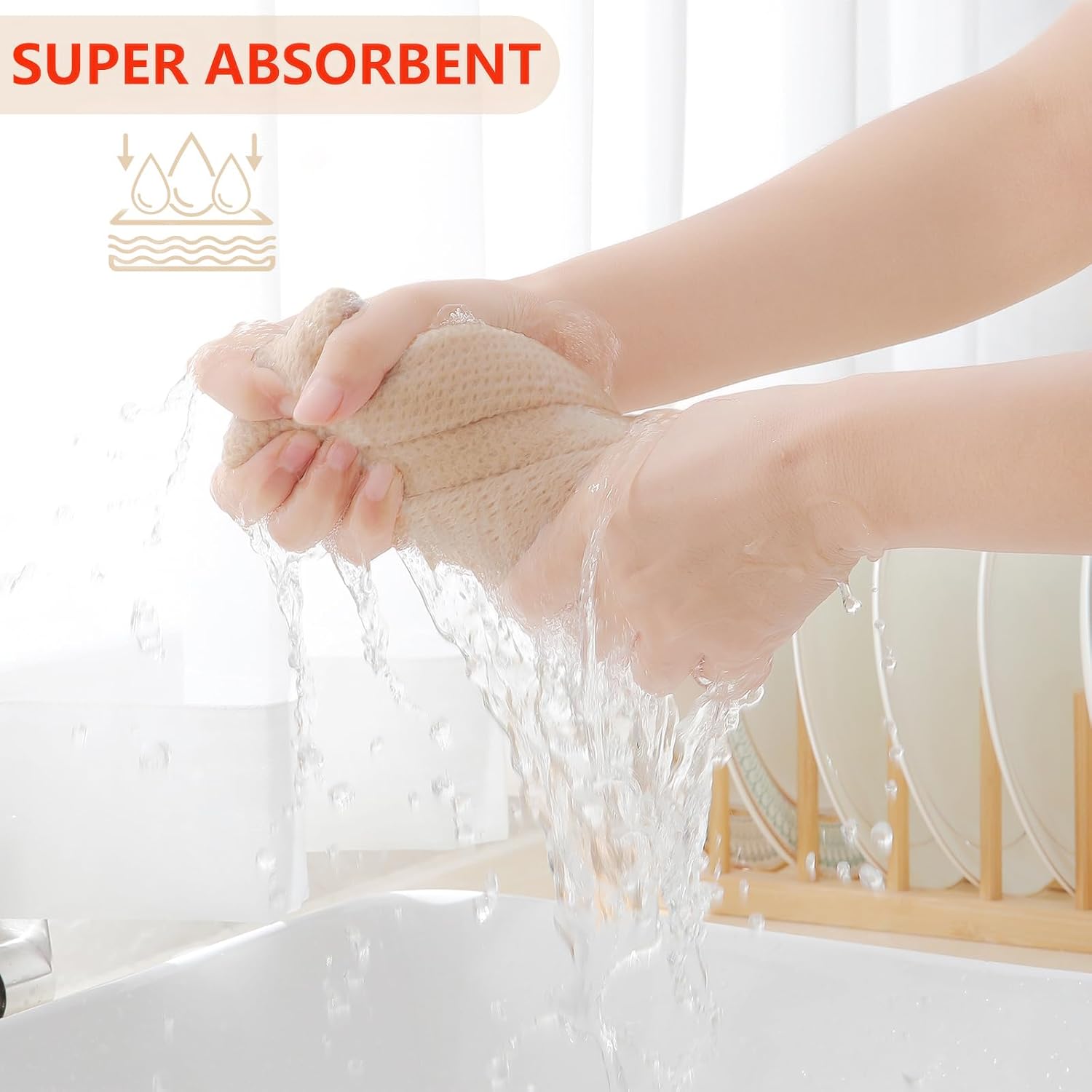 Homaxy 100% Cotton Waffle Weave Kitchen Dish Cloths, Ultra Soft Absorbent Quick Drying Dish Towels, 12 x 12 Inches, 12-Pack, Beige