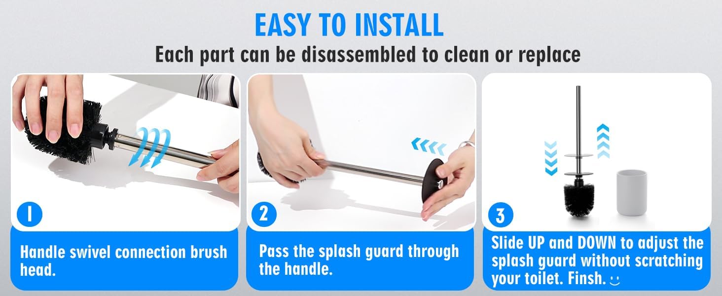 • 🅥 Stainless Steel Handle: The handle of our toilet brush is constructed from high-quality 304 stainless steel. This material ensures excellent corrosion resistance, preventing rust and stain infestation. Enjoy a long-lasting and hygienic cleaning experience.