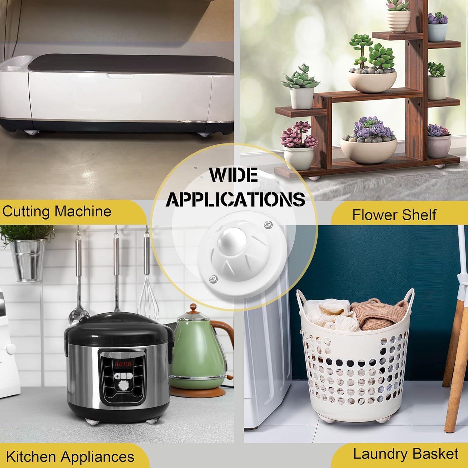 • 【Quick & Easy Installation】Stick PlusRoc appliance wheels on the bottom of your kitchen appliances such as coffee makers, stand mixers, blenders, air fryers, microwave ovens with included adhesive pads. Make moving appliances quick and easy without scratching countertop surface.Tips:1.These mini casters only work on smooth and hard surfaces.2.We suggest you use mini wheels 24 hours later after installation.