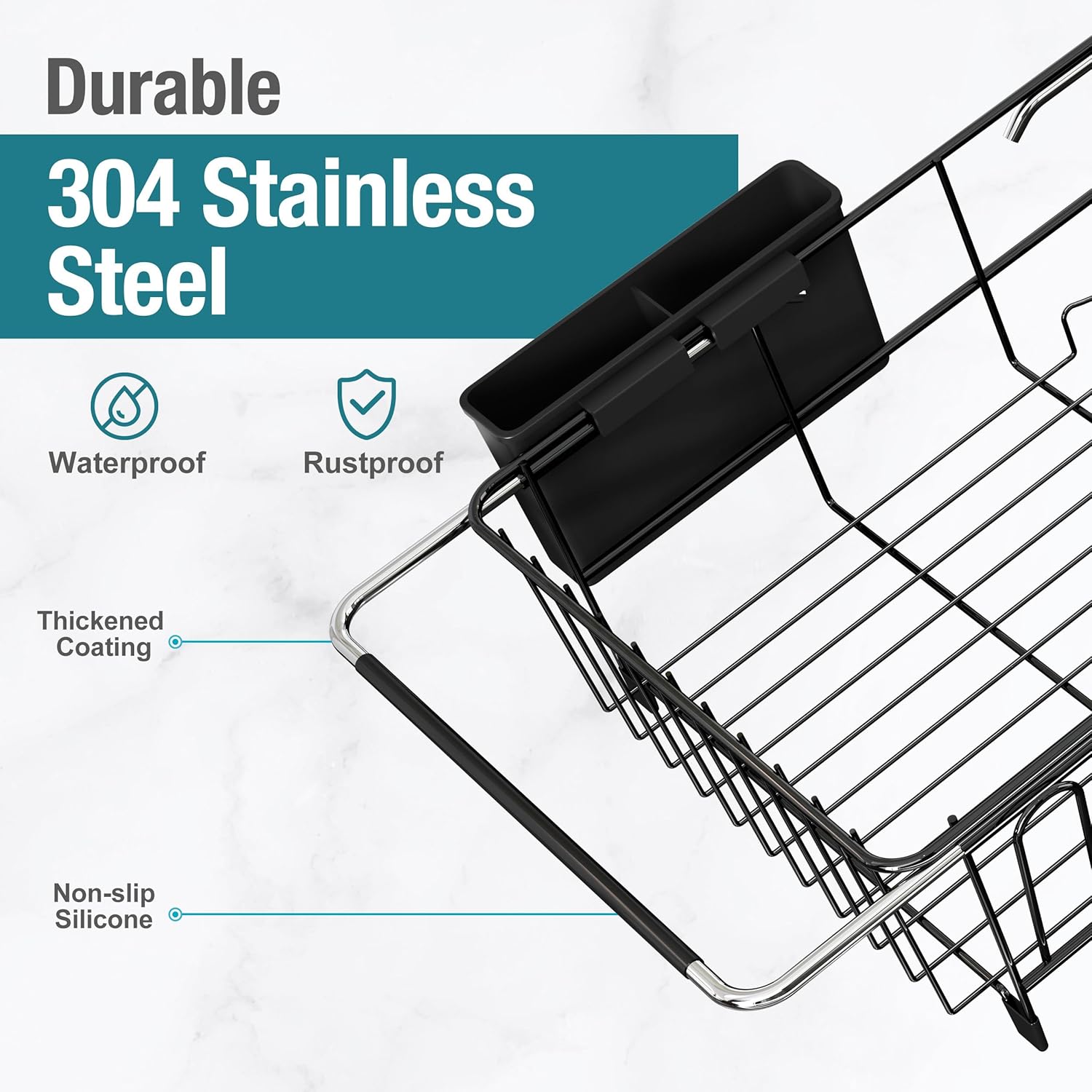 • Rustproof & Long Lasting: To prevent rust on the dish racks, this kitchen drying rack is made of food-grade Stainless Steel and constructed of thickened tube pipes, Stable and High Load Bearing