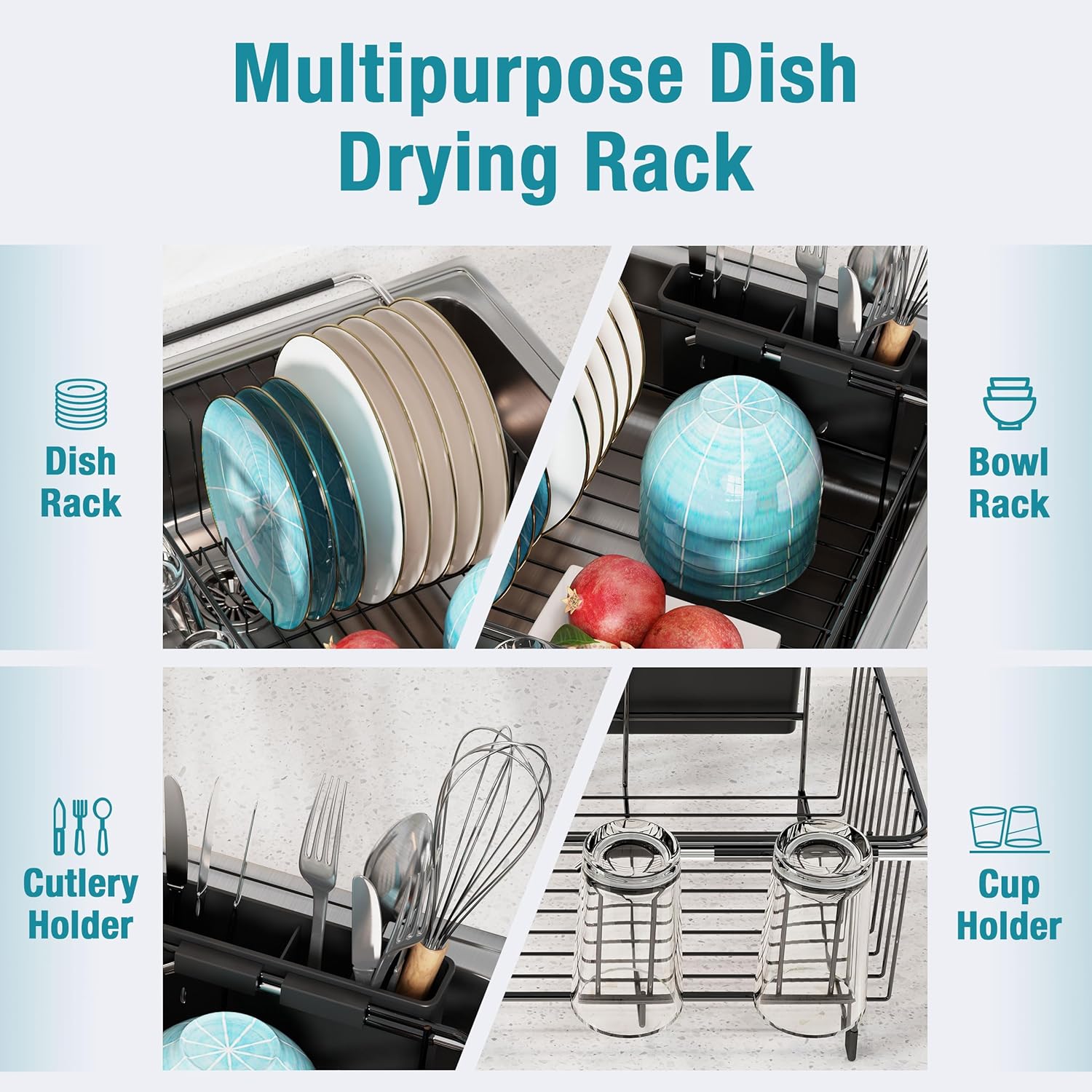 • Used for Three Scenarios: This dish drying rack expands for use on the countertop, in-sink or over-sink