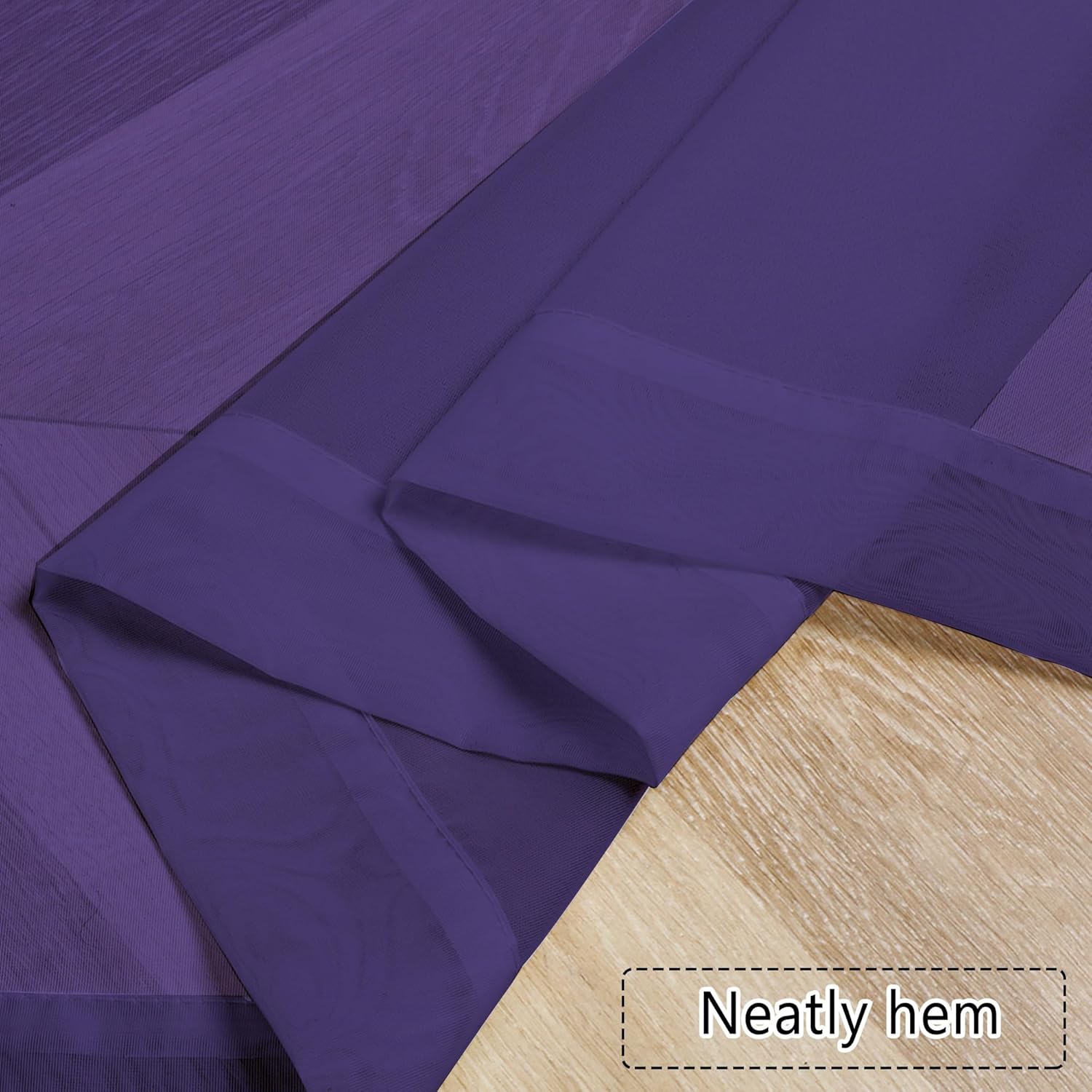 Chyhomenyc Sheer Valances for Windows 2 Packs, 42Wx14L Inches Small Window Valance for Living Room Bathroom Cafe Laundry Basement, Elegant Rod Pocket Voile Valance, Purple
