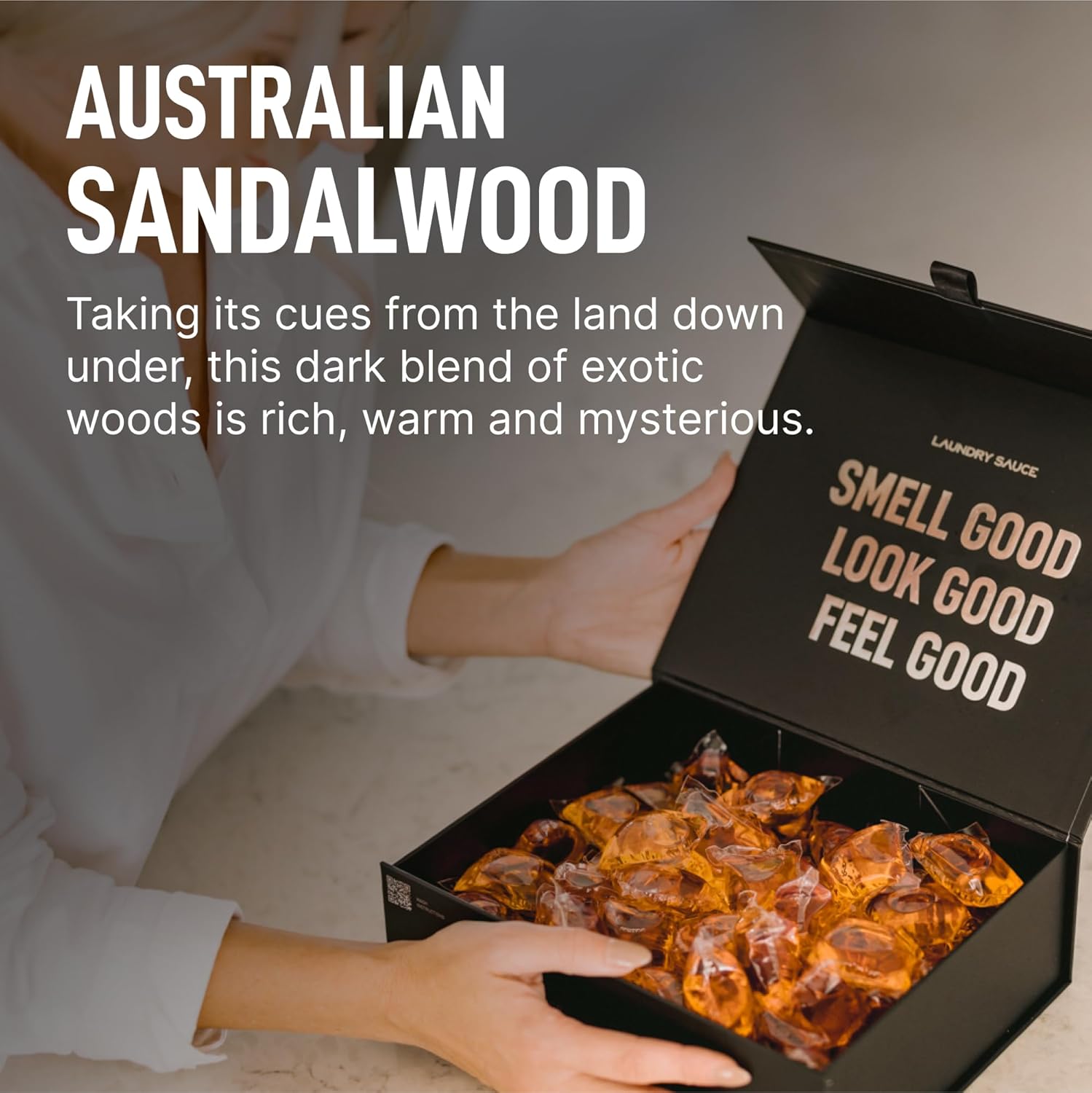 Laundry Sauce - Luxury Scented Laundry Detergent Pods & Scent Booster Bundle (Australian Sandalwood), Premium Laundry Washing Pods with High-End, Sophisticated Fragrances, Dye Free & HE Compatible