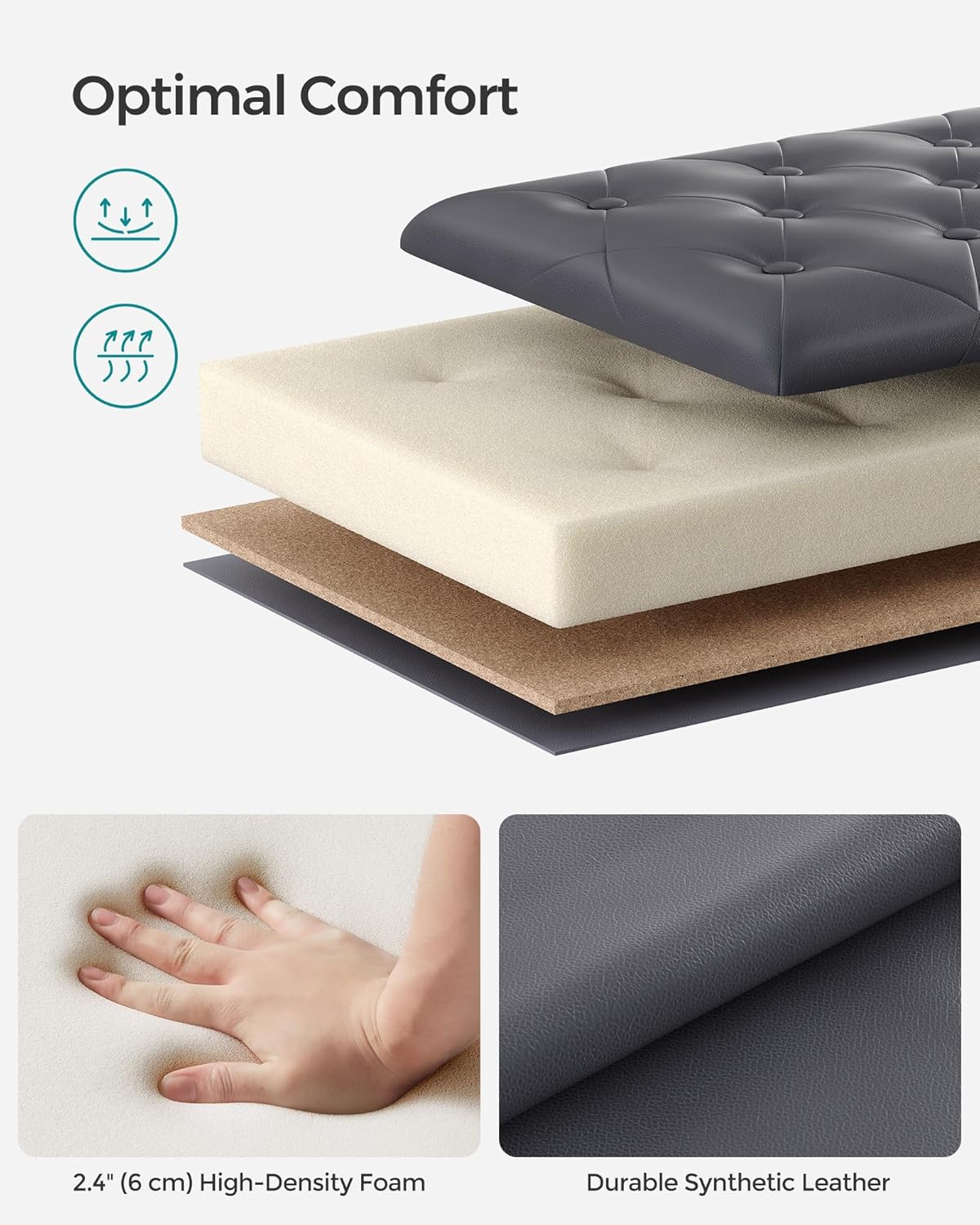 • [Comfort Meets Style] Sit in comfort with a 2.4" (6 cm) thick high-density foam seat that resists deformation. Coupled with a premium synthetic leather and a tastefully tufted design, this storage bench blends comfort with style effortlessly