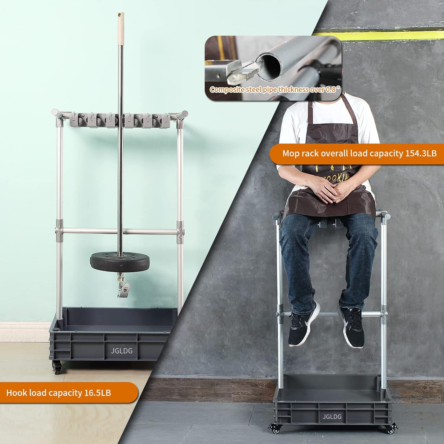 • 1. Versatile Storage: Keep your brooms, mops, and other cleaning tools organized and easily accessible with our mobile broom and mop holder cart.